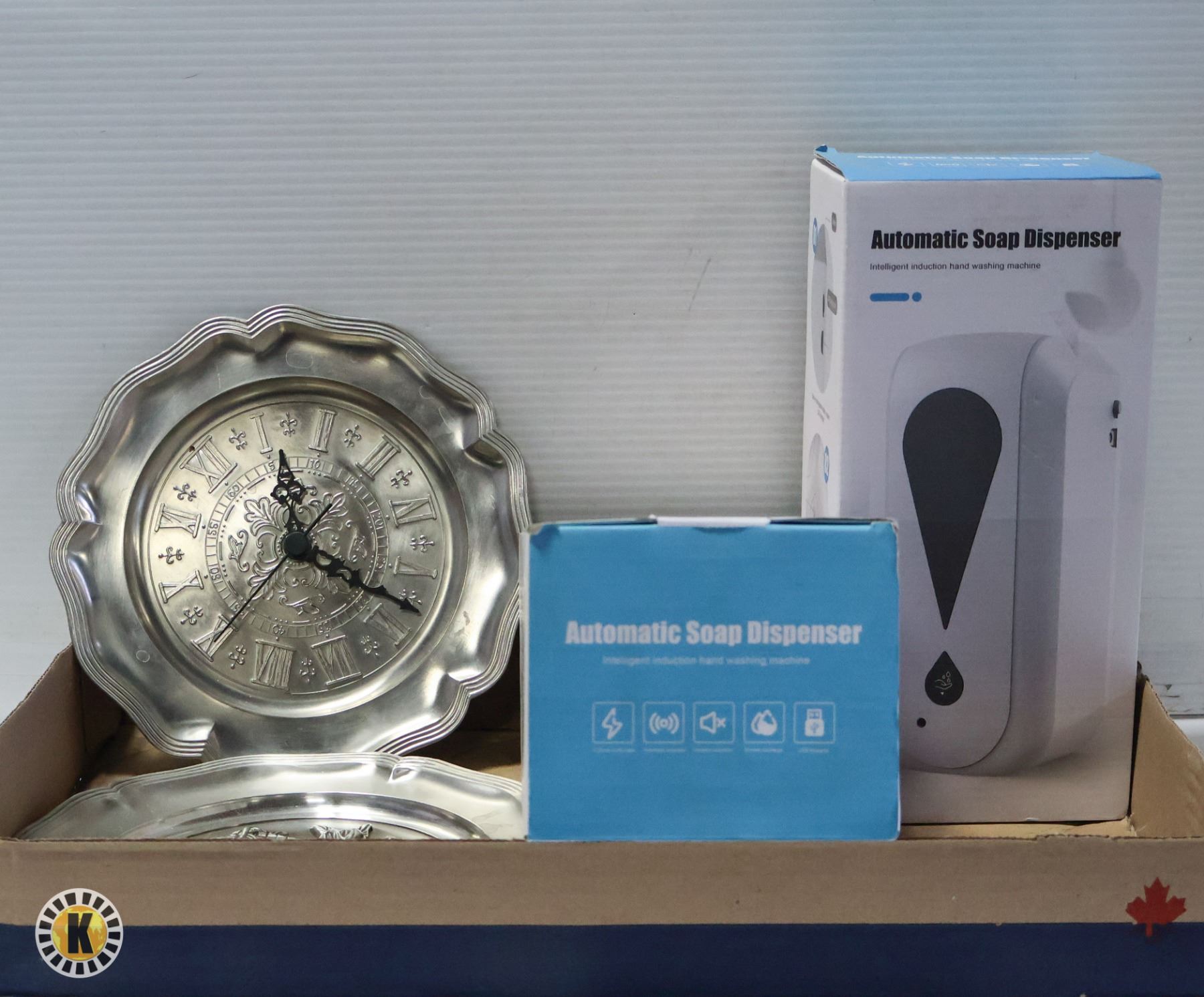 WALL-MOUNTED ALCOHOL MIST SPRAY AUTOMATIC SENSOR AND NEW OLD STOCK 32VINTAGE GERMAN DECOR PEWTER PLATE/CLOCK