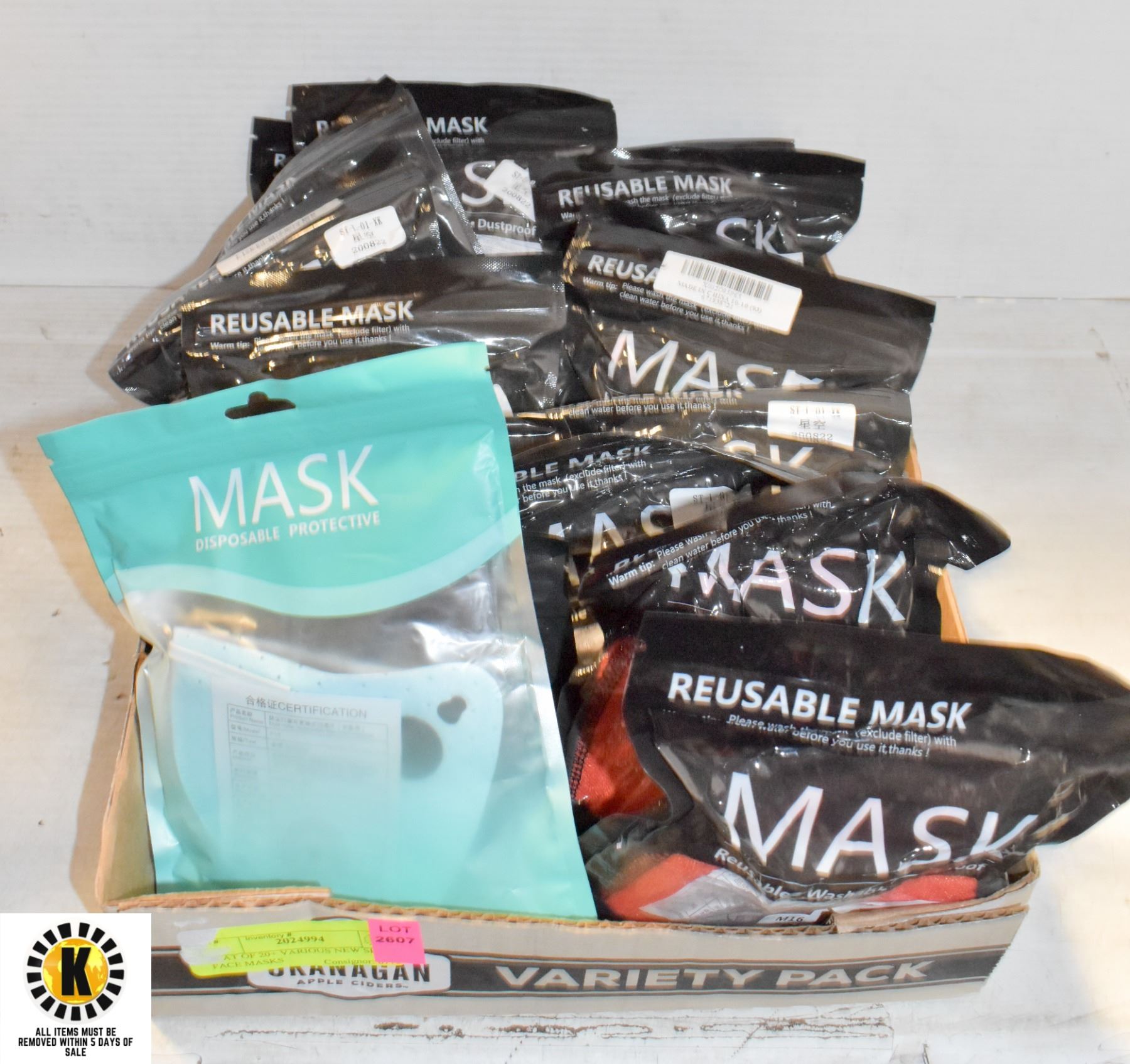 FLAT OF 20+ VARIOUS NEW SEALED FACE MASKS
