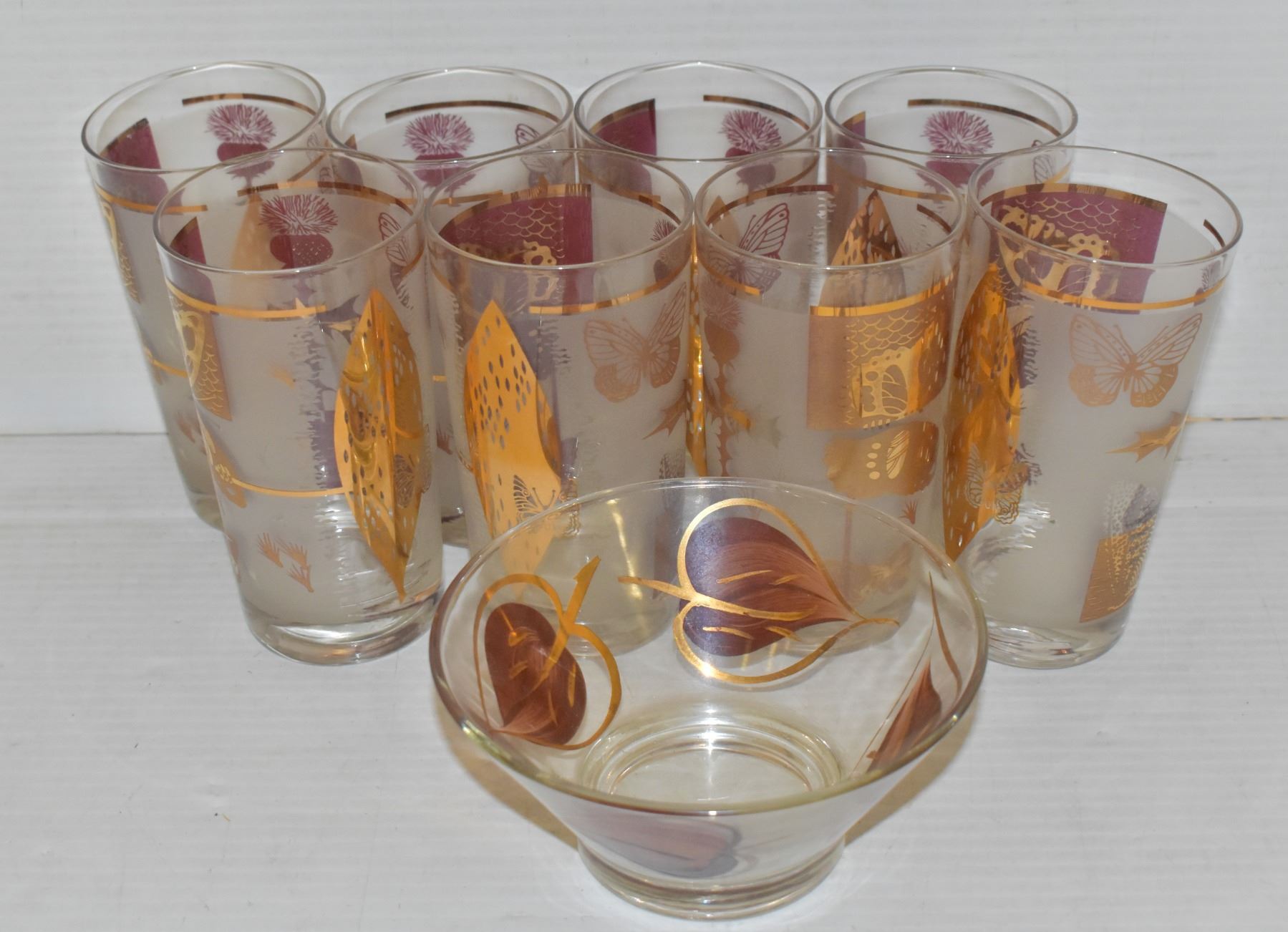 FLAT OF 22KT GP 8 GLASSES WITH PEANUT DISH BAR