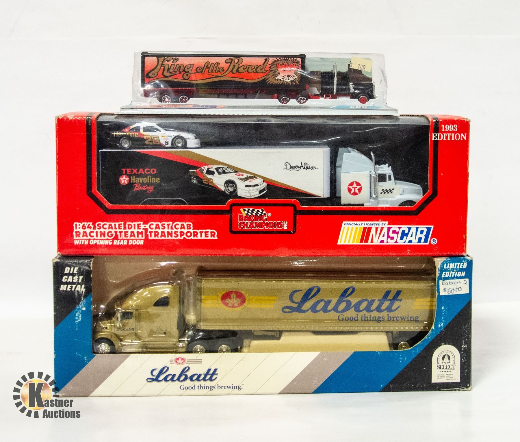FLAT OF 3 BIG RIGS (NASCAR, LABATT 1/64 SCALE, 1