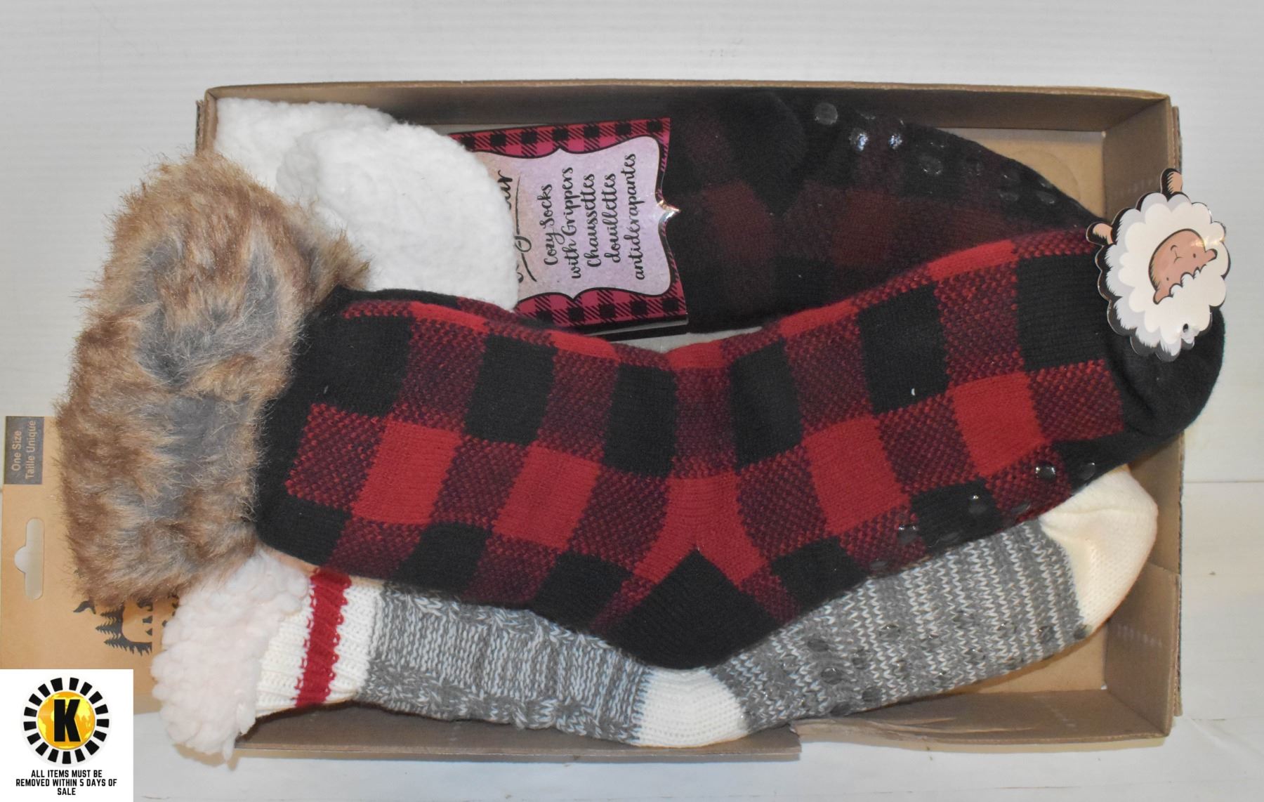 FLAT OF 3 LADIES COZY WEAR SOCKS WITH GRIPPERS