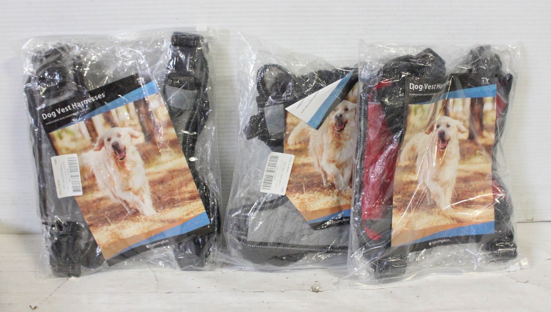 FLAT OF 3 LARGE SIZE DOG HARNESSES NEW IN PACKAGE