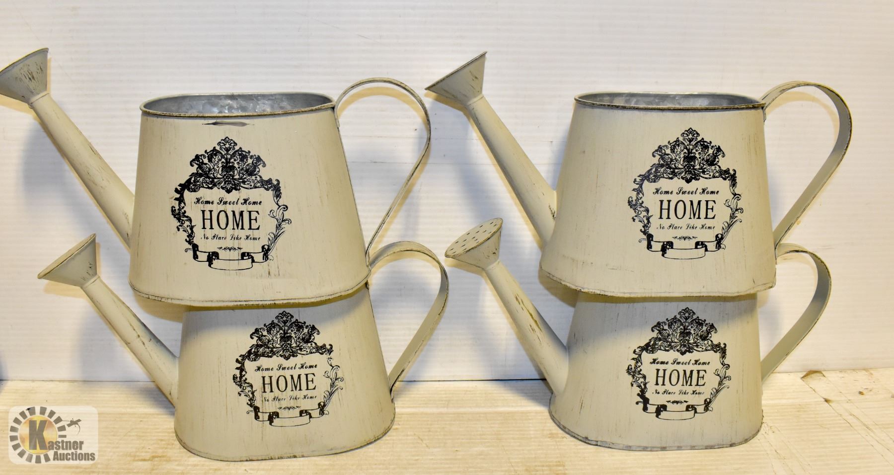 FLAT OF 4 ANTIQUE STYLE METAL WATERING CANS