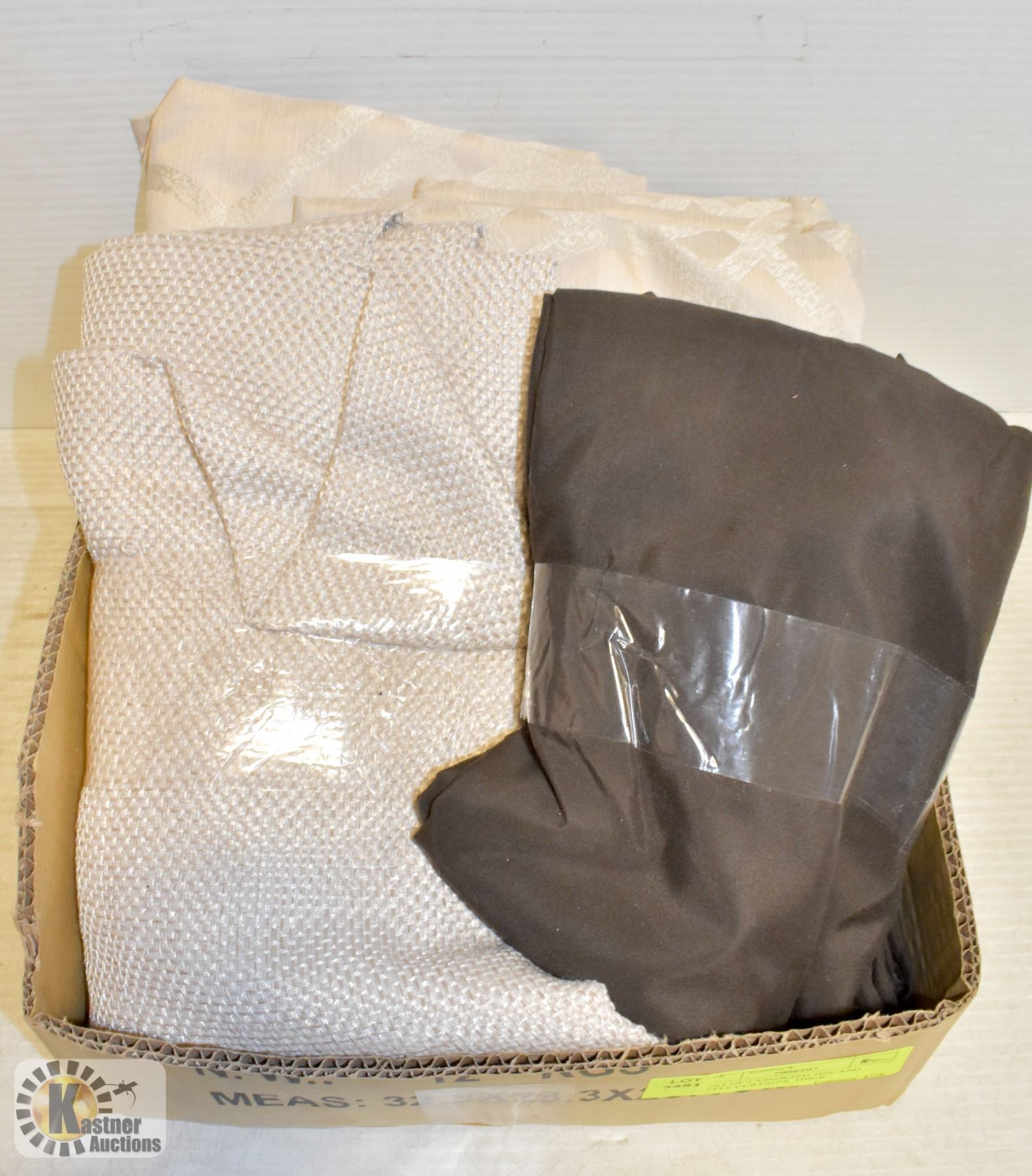 FLAT OF 4 ASSORTED SIZE AND STYLE CURTAINS, THICK