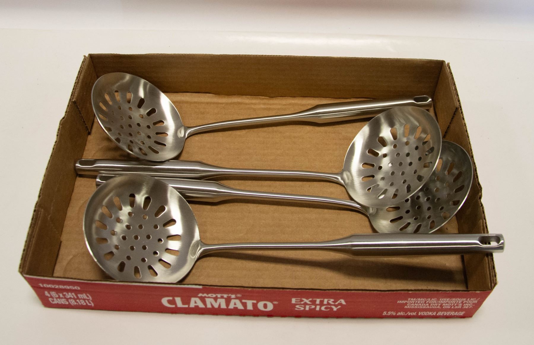 FLAT OF 4 NEW STAINLESS STEEL LADDLES