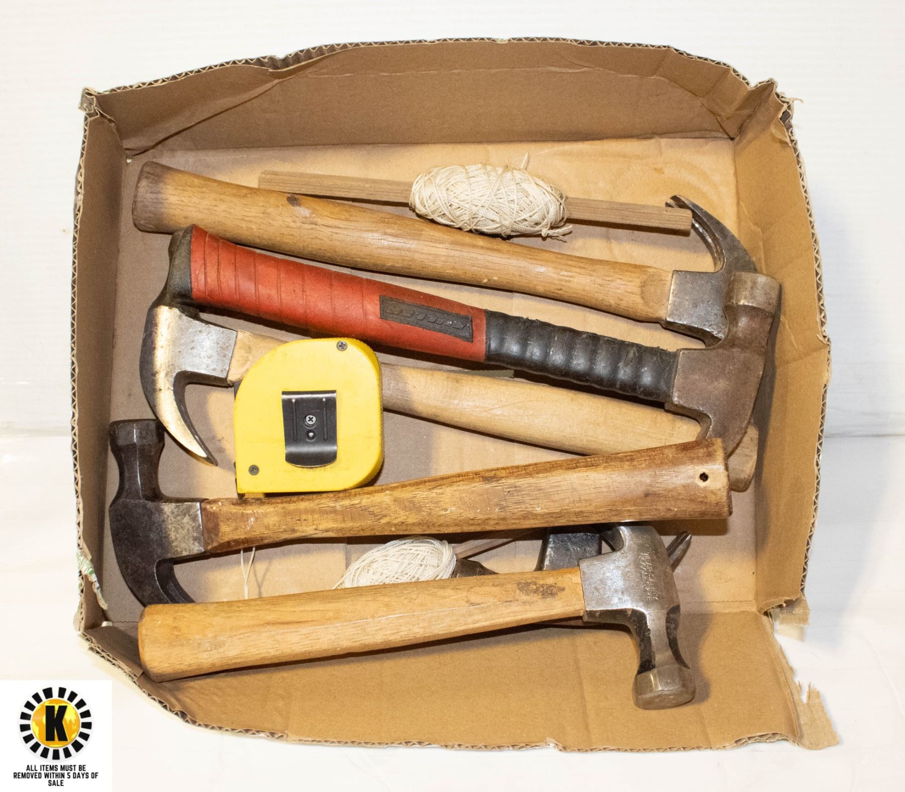FLAT OF 5 HAMMERS AND TAPE MEASURE
