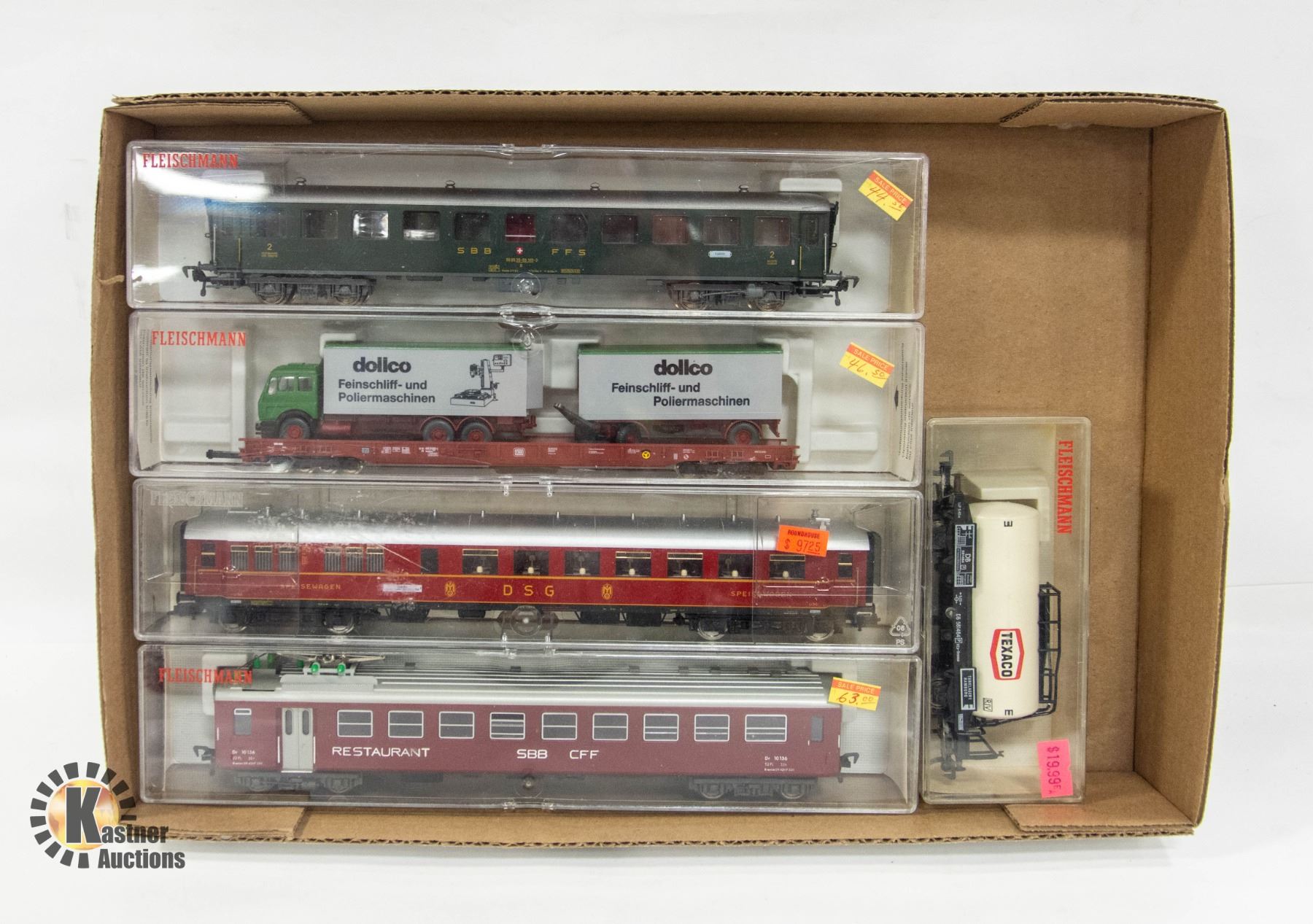 FLAT OF 5 VINTAGE FLEISCHMANN HO TRAIN CARS