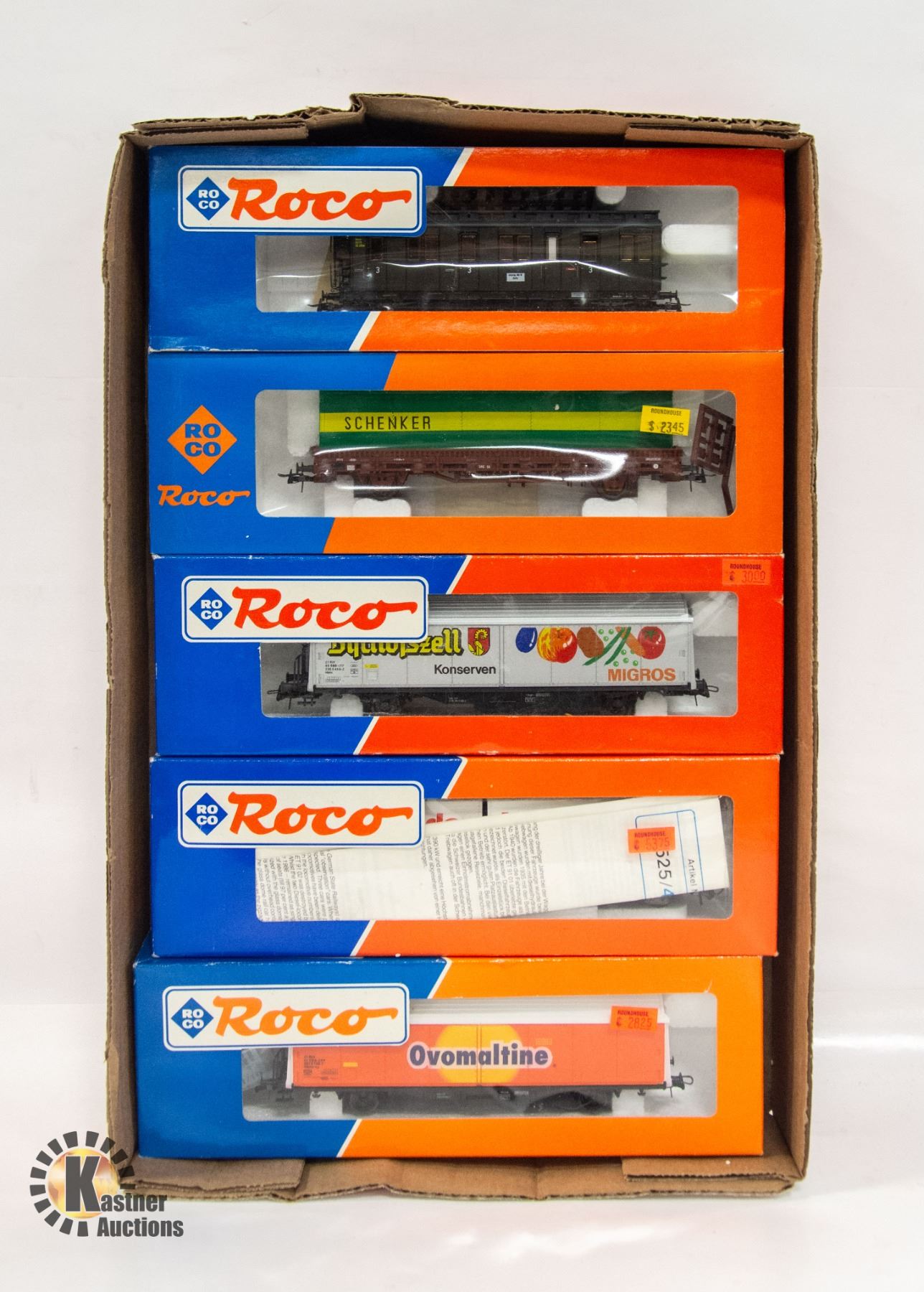 FLAT OF 5 VINTAGE ROCO HO TRAIN CARS