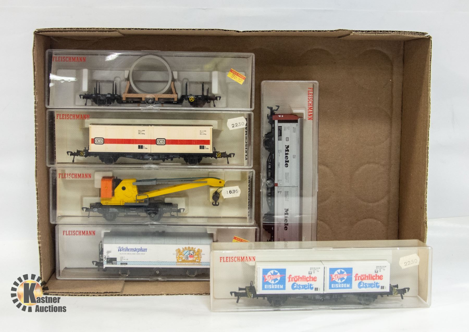 FLAT OF 6 VINTAGE FLEISCHMANN HO TRAIN CARS