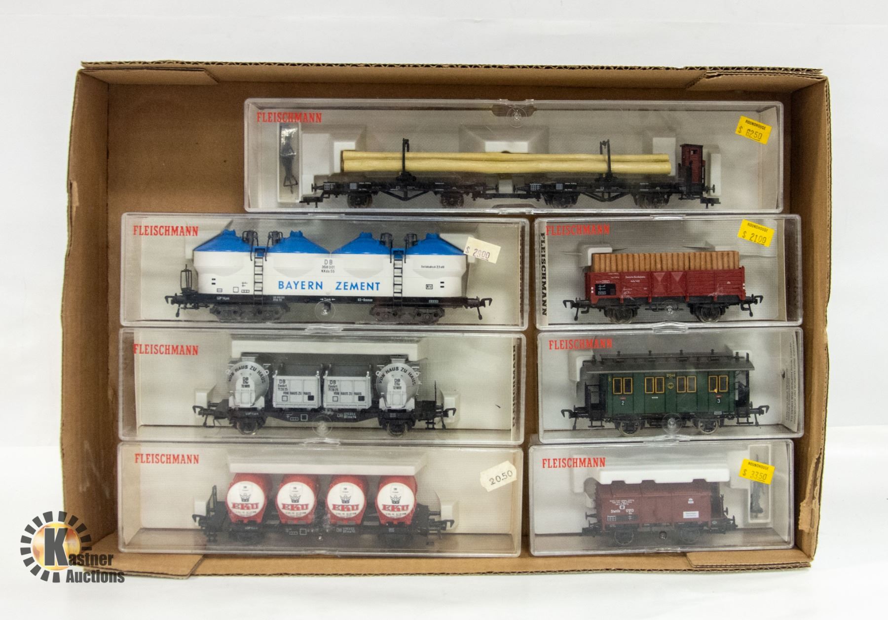 FLAT OF 7 VINTAGE FLEISCHMANN HO TRAIN CARS