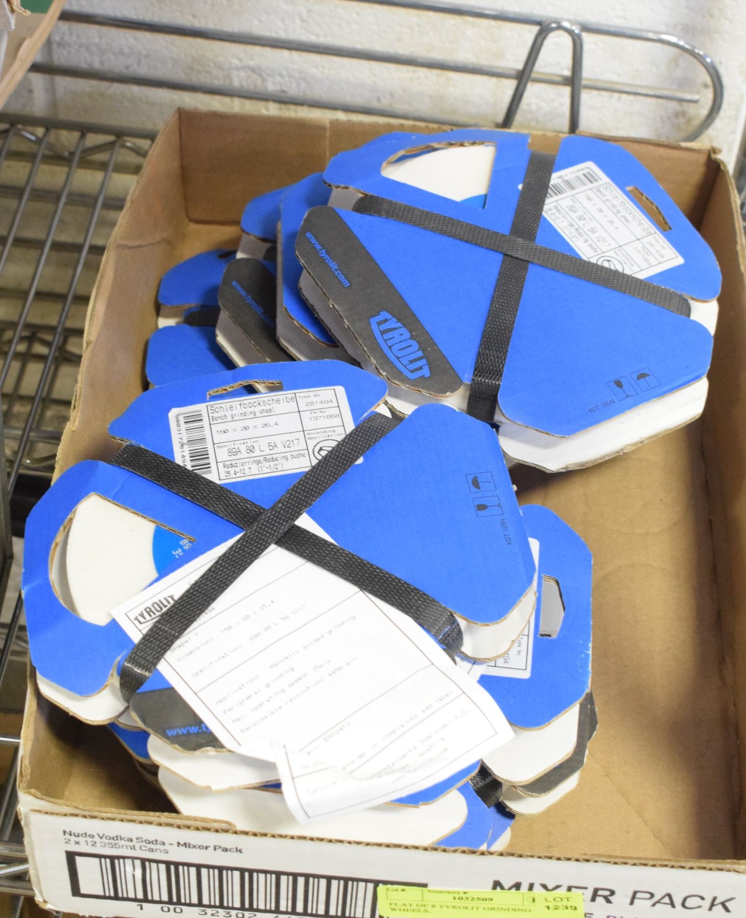 FLAT OF 8 TYROLIT GRINDING WHEELS.