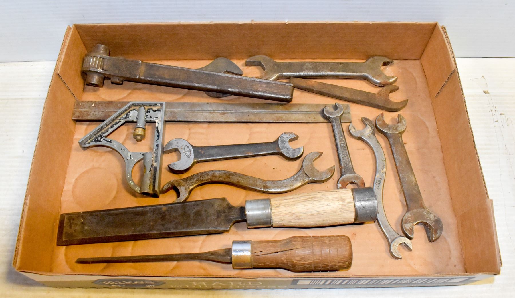 FLAT OF ANTIQUE / VINTAGE TOOLS