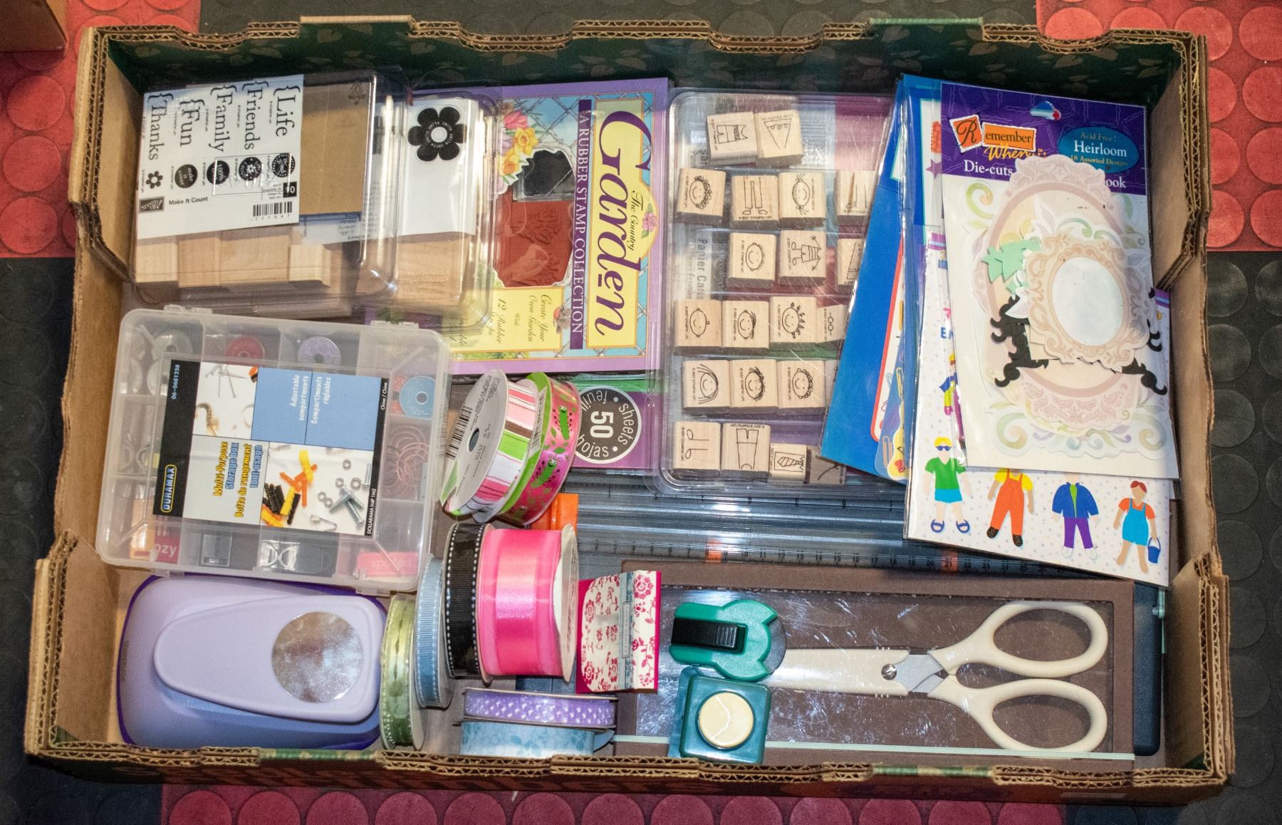 SCISSORS, DESIGNER PAPER, MARTHA STEWART SCISSORS, LOTS OF RUBBER STAMPS, PAPER SLIDE CUTTER, PAPER STAMP CUTTERS, RIBBON, DIE-CUTS FOR SCRAPBOOKING, ETC. **ALL ITEMS MUST BE REMOVED BY 5PM SATURDAY, FEBRUARY 4TH 2023.** ALL REMAINING ITEMS WILL BE SUBJECT TO A $6.00 PER DAY STORAGE CHARGE. ANY ITEMS REMAINING AFTER MONDAY, FEBRUARY 20TH, 2023 WILL BE CONSIDERED FORFEITED. NO REFUNDS WILL BE ISSUED FOR FORFEITED ITEMS. TO SCHEDULE A PICK UP APPOINTMENT CLICK HERE