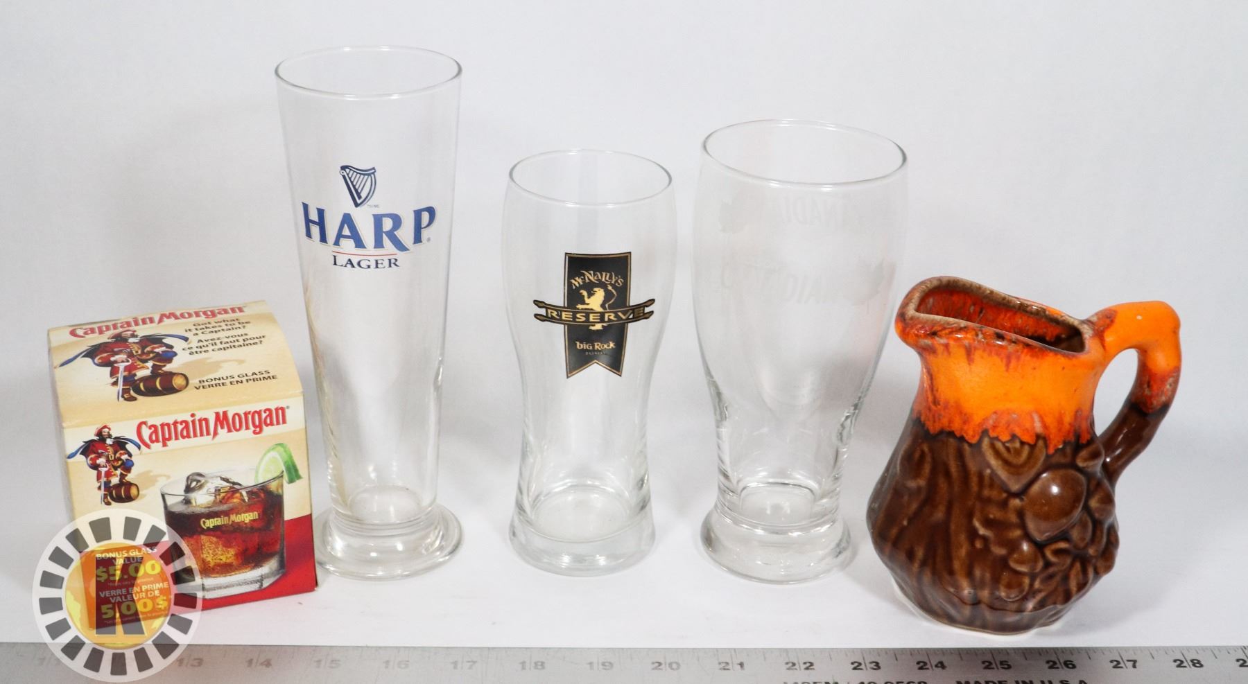 FLAT OF ASSORTED BEER GLASSES AND MORE