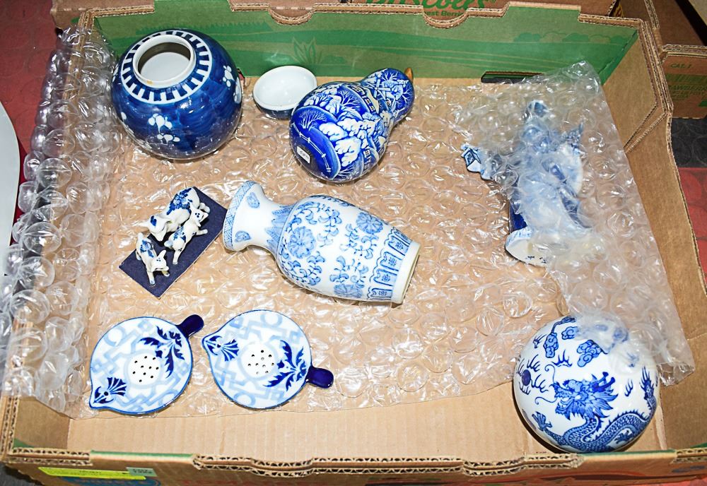 FLAT OF ASSORTED BLUE/WHITE GLASS/DECOR