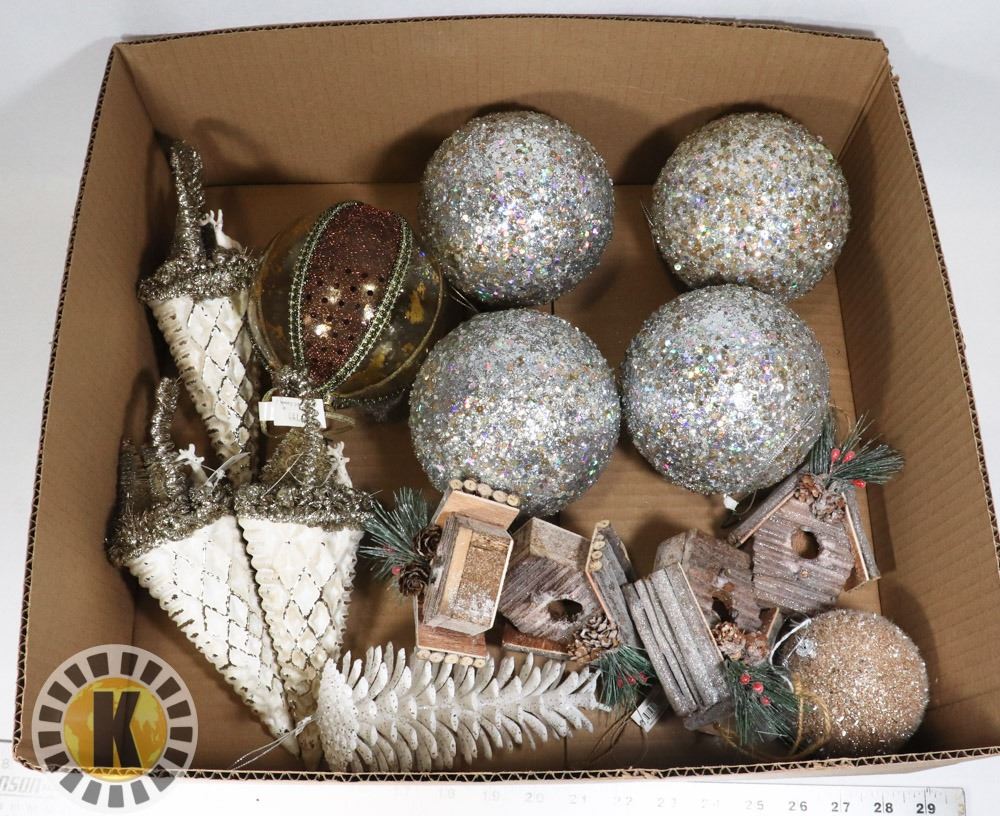 FLAT OF ASSORTED CHRISTMAS DECORATIONS