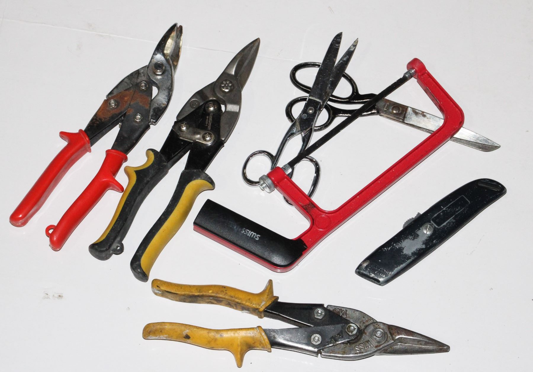 FLAT OF ASSORTED CUTTING TOOLS, SNIPS,