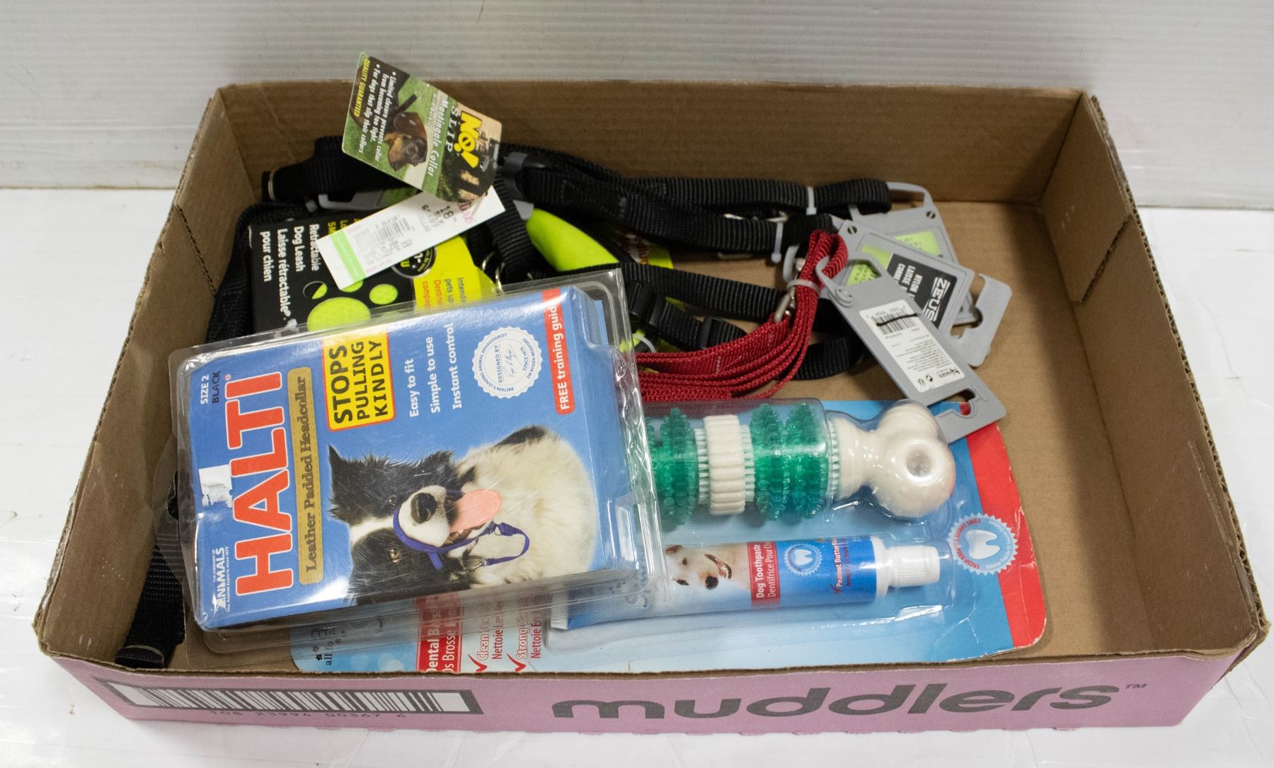 FLAT OF ASSORTED DOG COLLARS & SUPPLIES