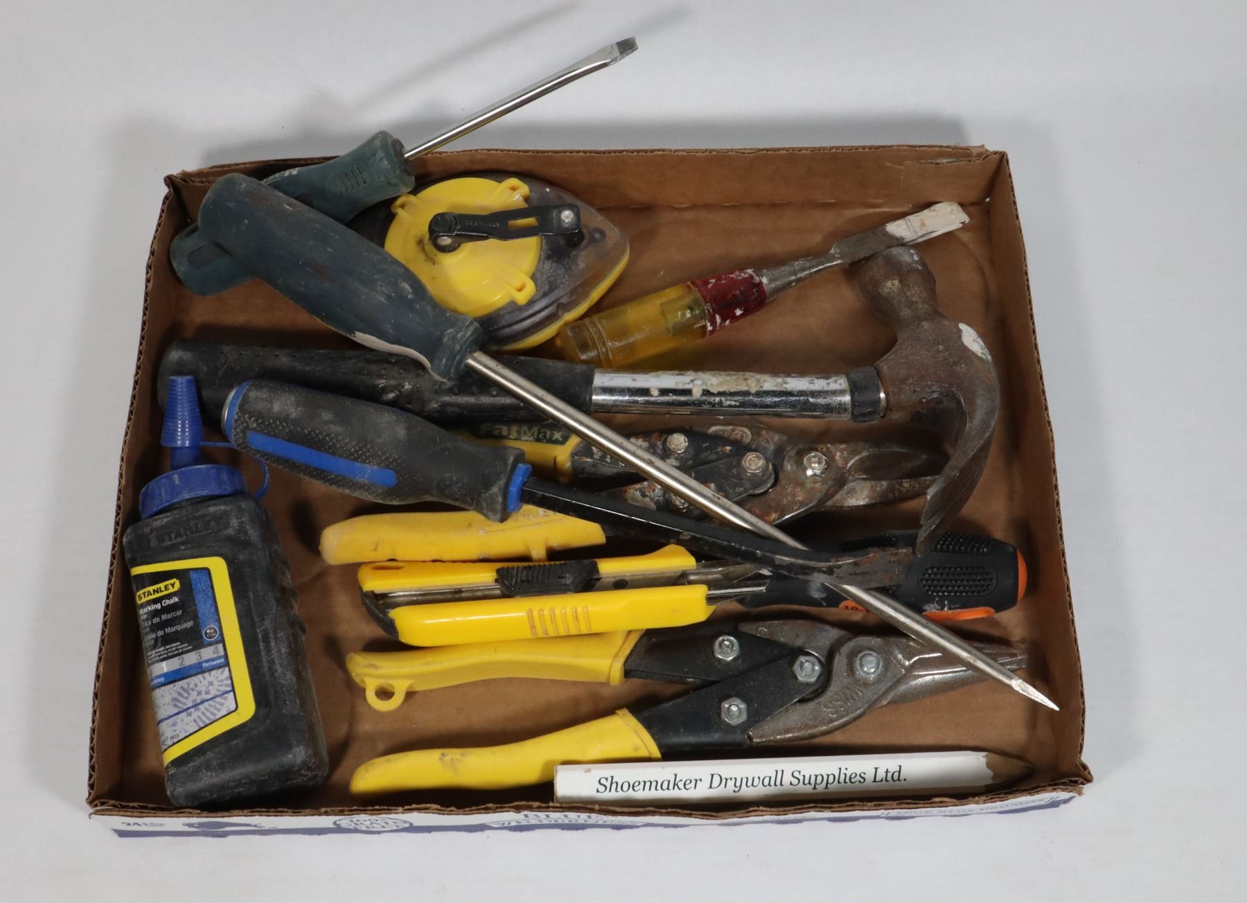 FLAT OF ASSORTED HAND TOOLS INCLUDING SNIPS,