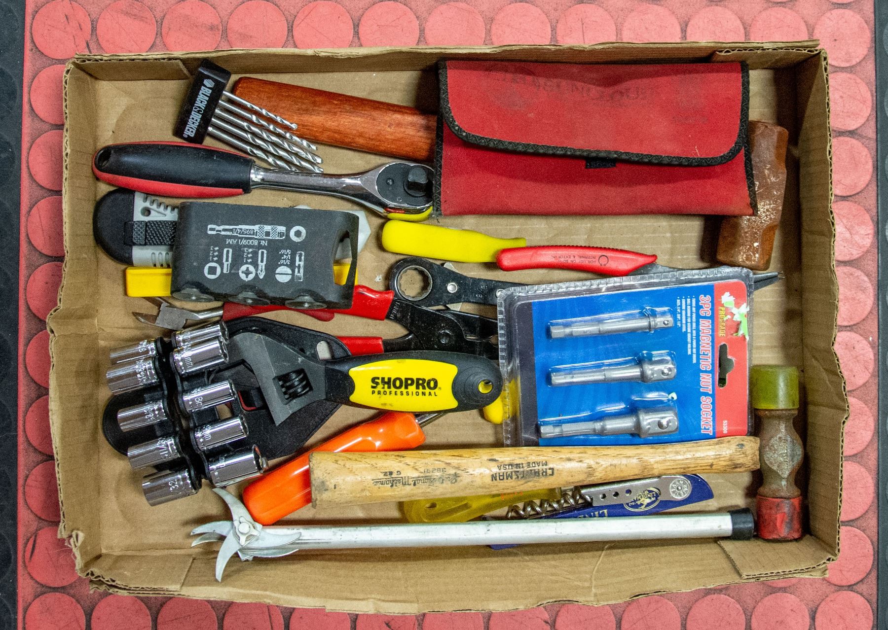 FLAT OF ASSORTED HAND TOOLS - NEW AND USED