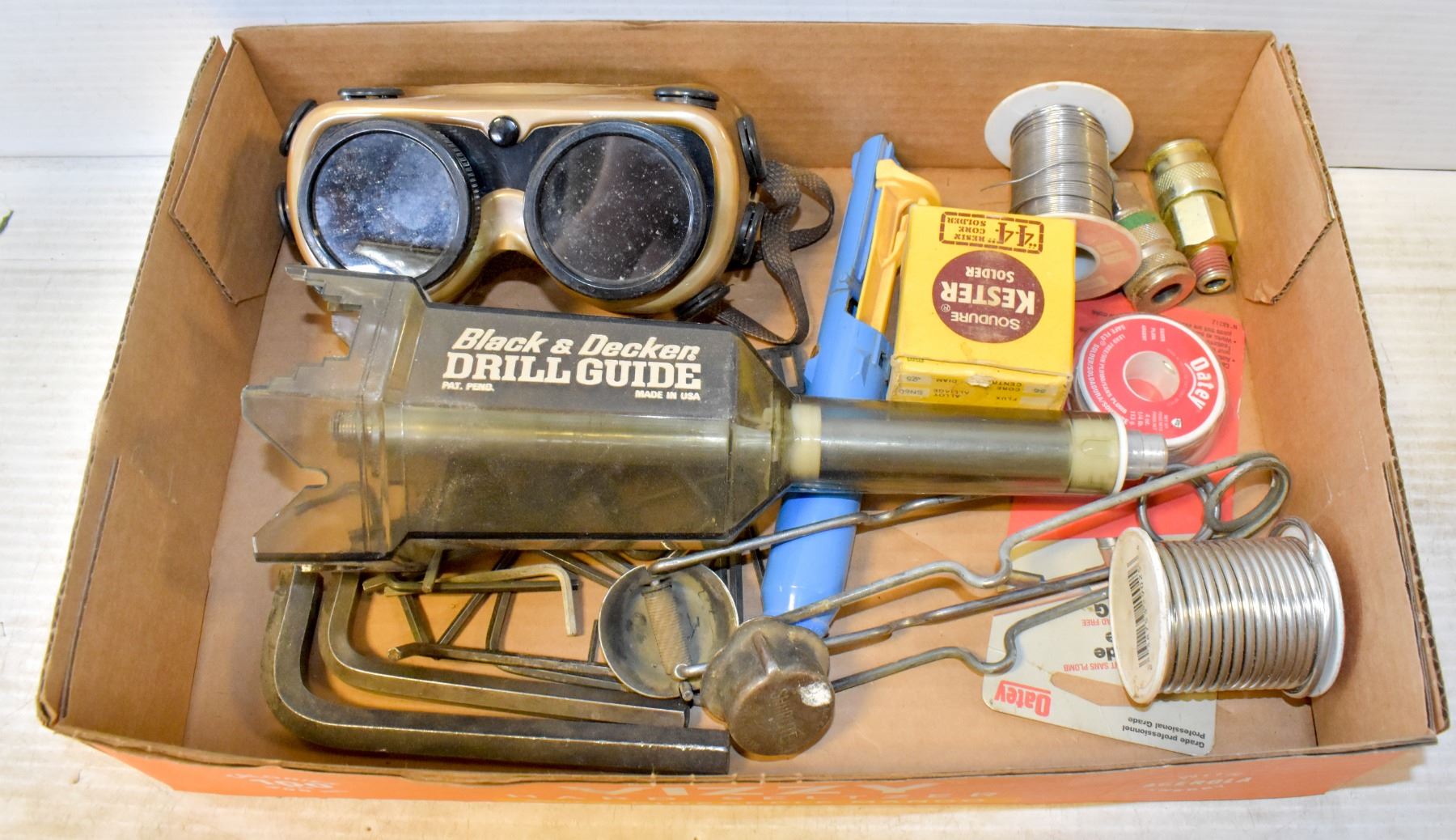 FLAT OF ASSORTED INCLUDING WELDING GOOGLES,