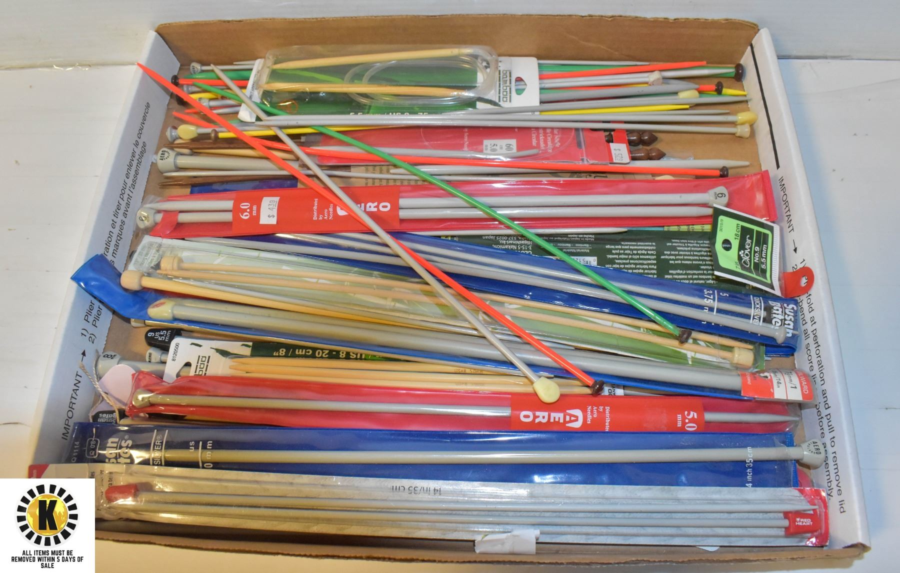 FLAT OF ASSORTED KNITTING NEEDLES