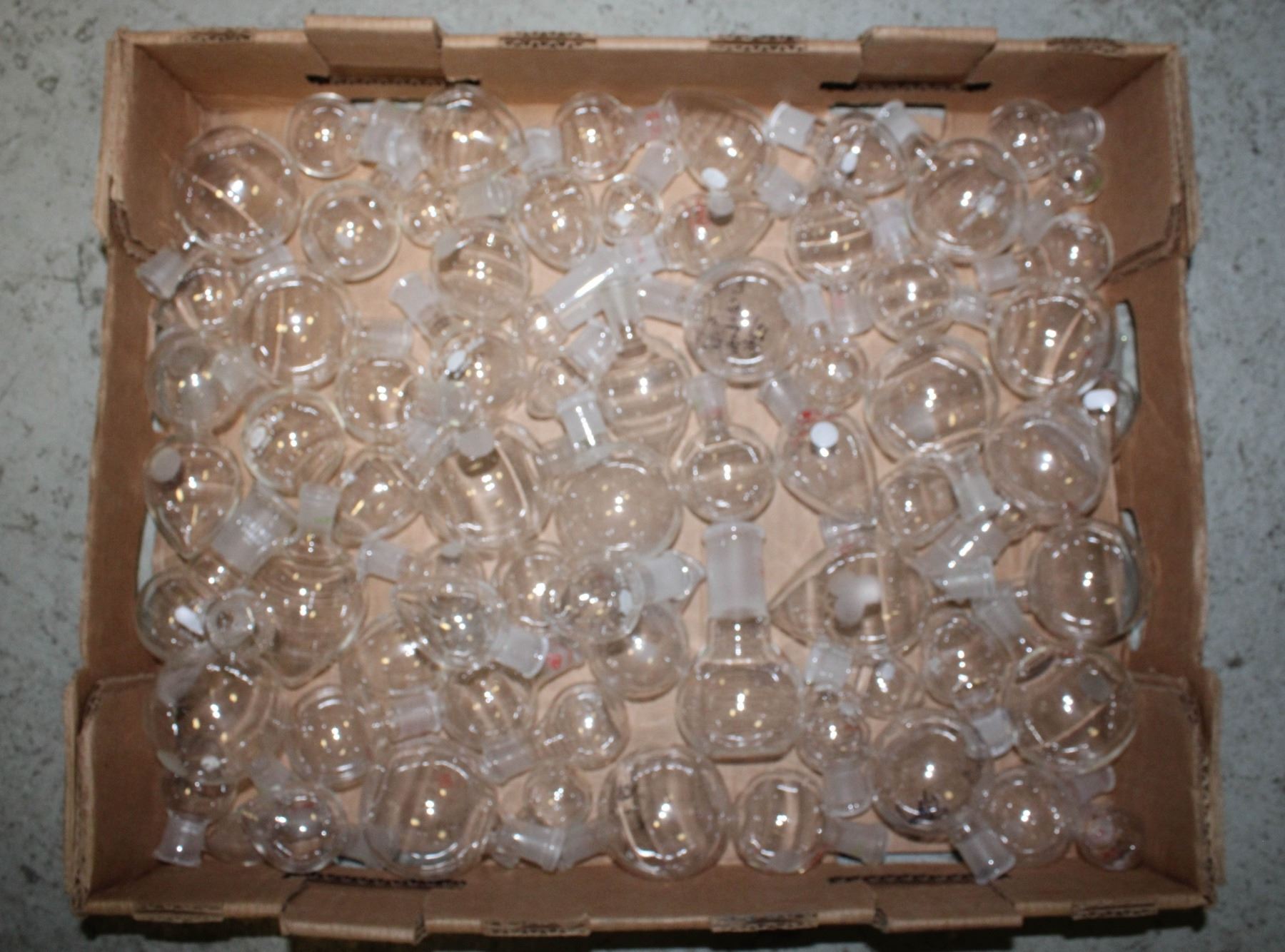 FLAT OF ASSORTED LABRATORY BEAKERS & VIALS