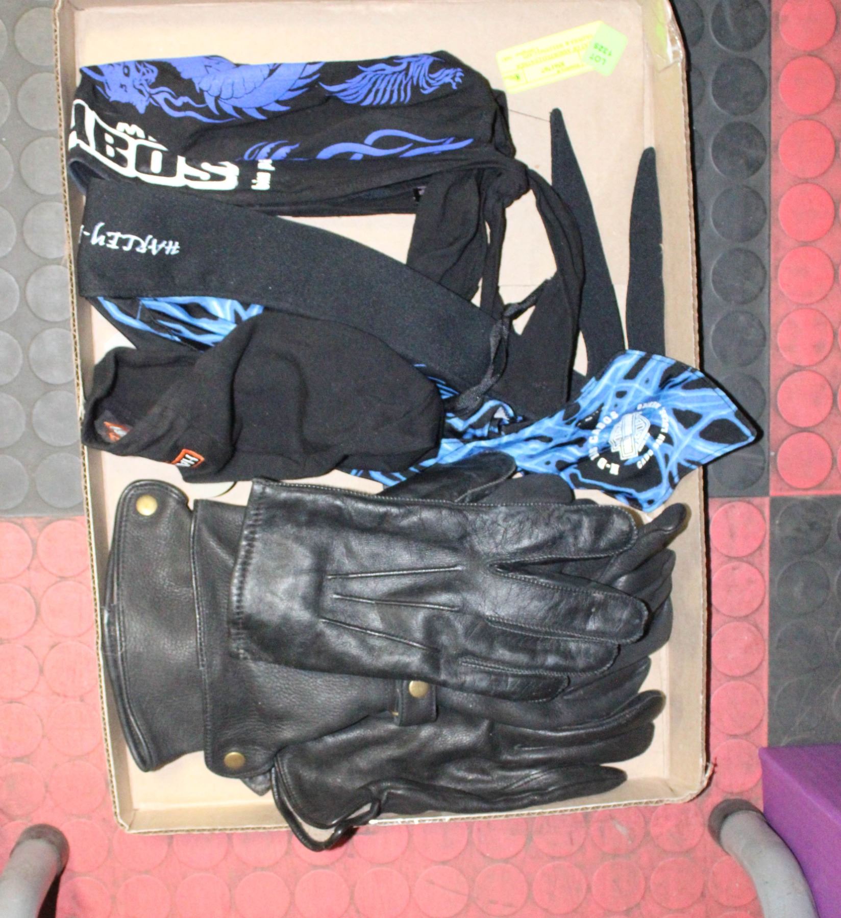 FLAT OF ASSORTED LEATHER GLOVES & WELDING CAPS