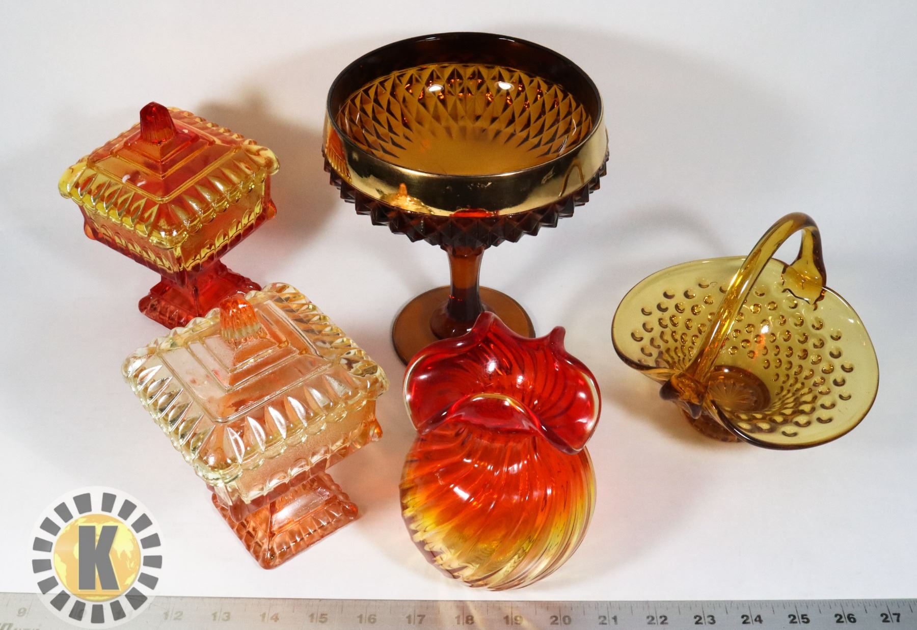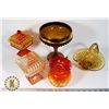 FLAT OF ASSORTED RED/ORANGE GLASSWARE