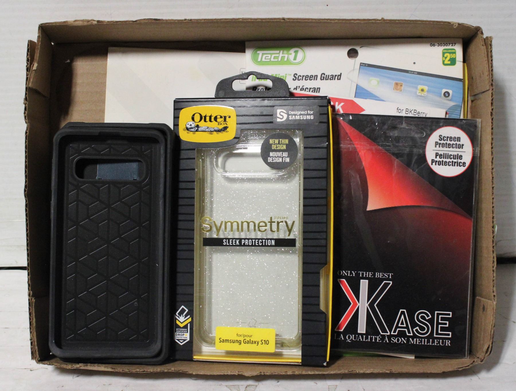 FLAT OF ASSORTED SCREEN PROTECTORS & PHONE CASES