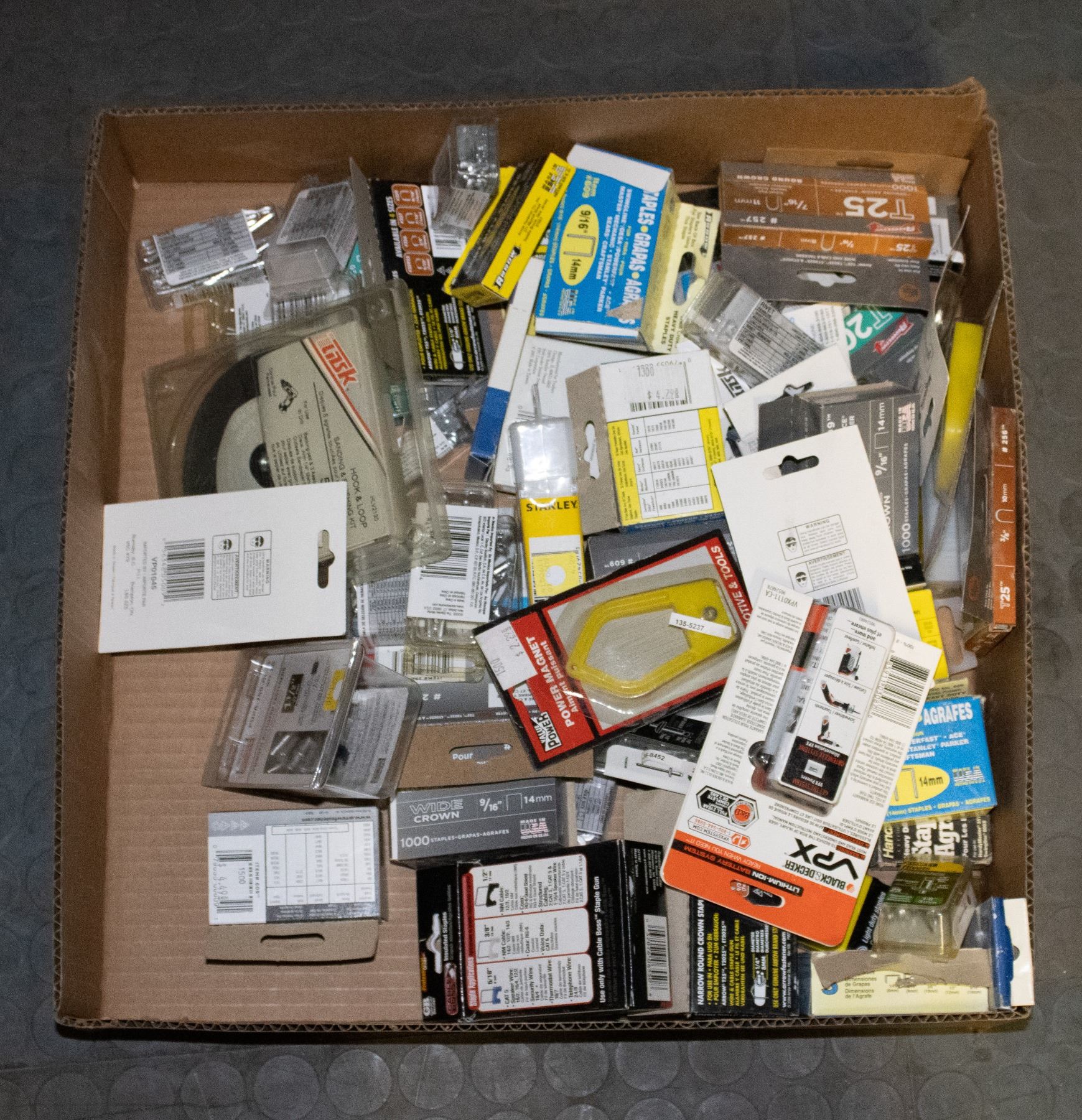 FLAT OF ASSORTED STAPLES, HARDWARE & MORE