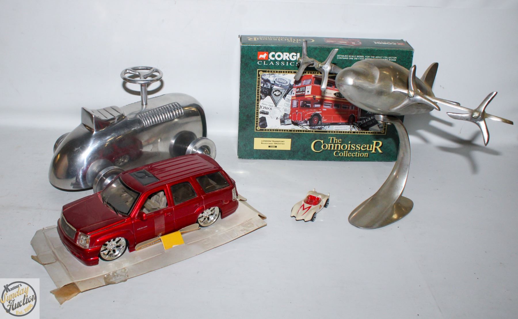 FLAT OF ASSORTED VEHICLE ORNAMENTS, CARS, BUS,