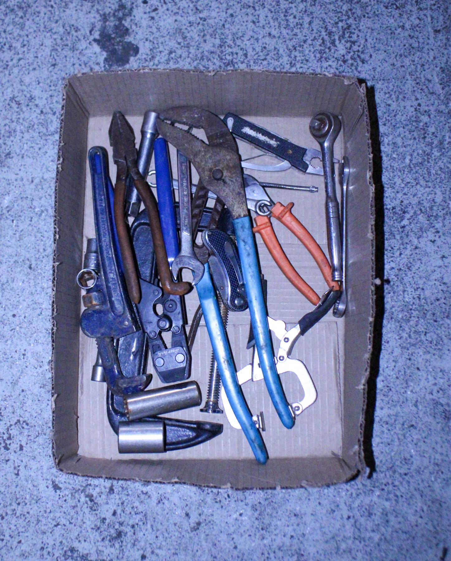 FLAT OF ASSRTED PLIERS AND WRENCHES
