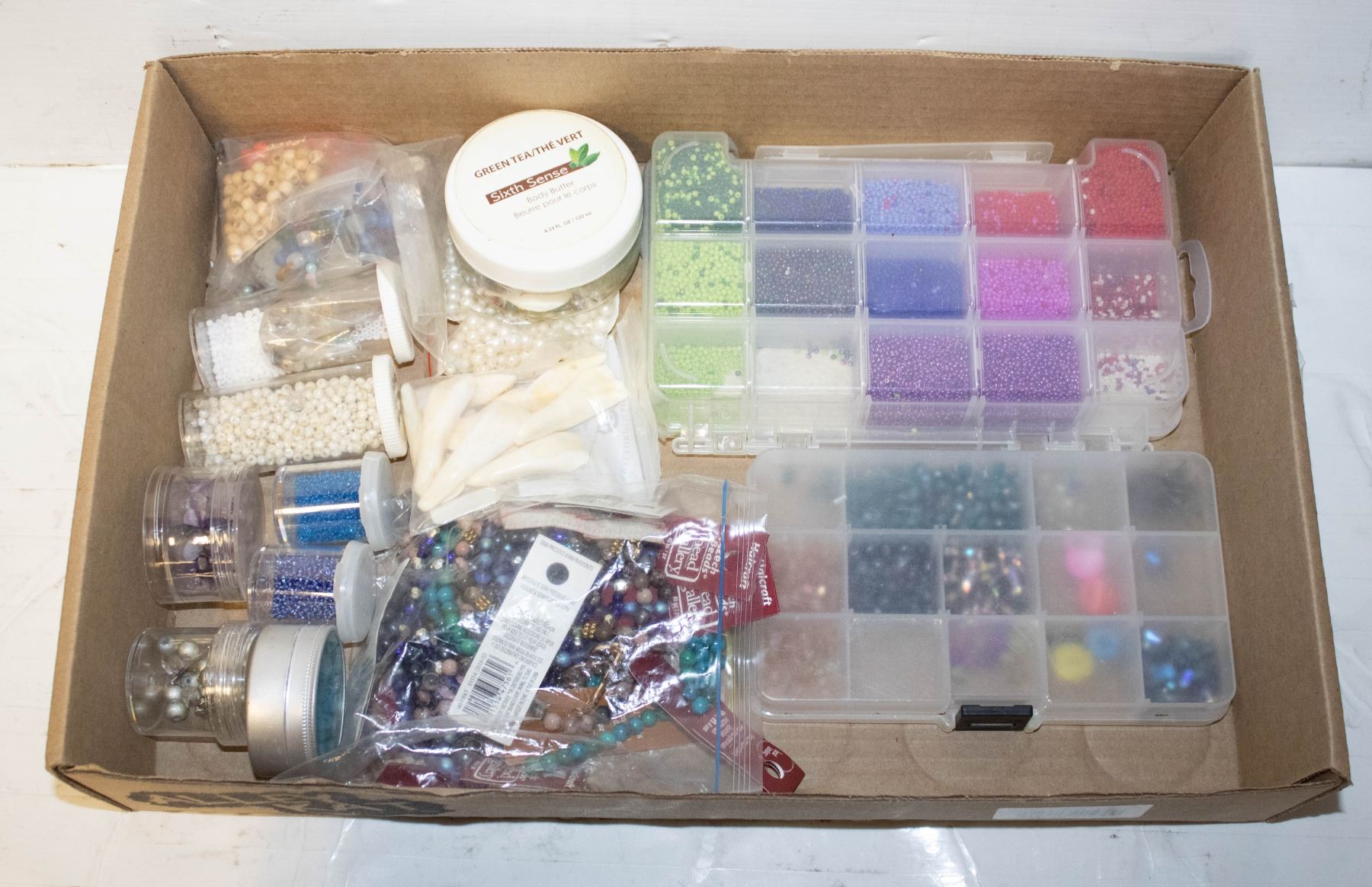 FLAT OF BEADS AND CRAFTING MATERIALS