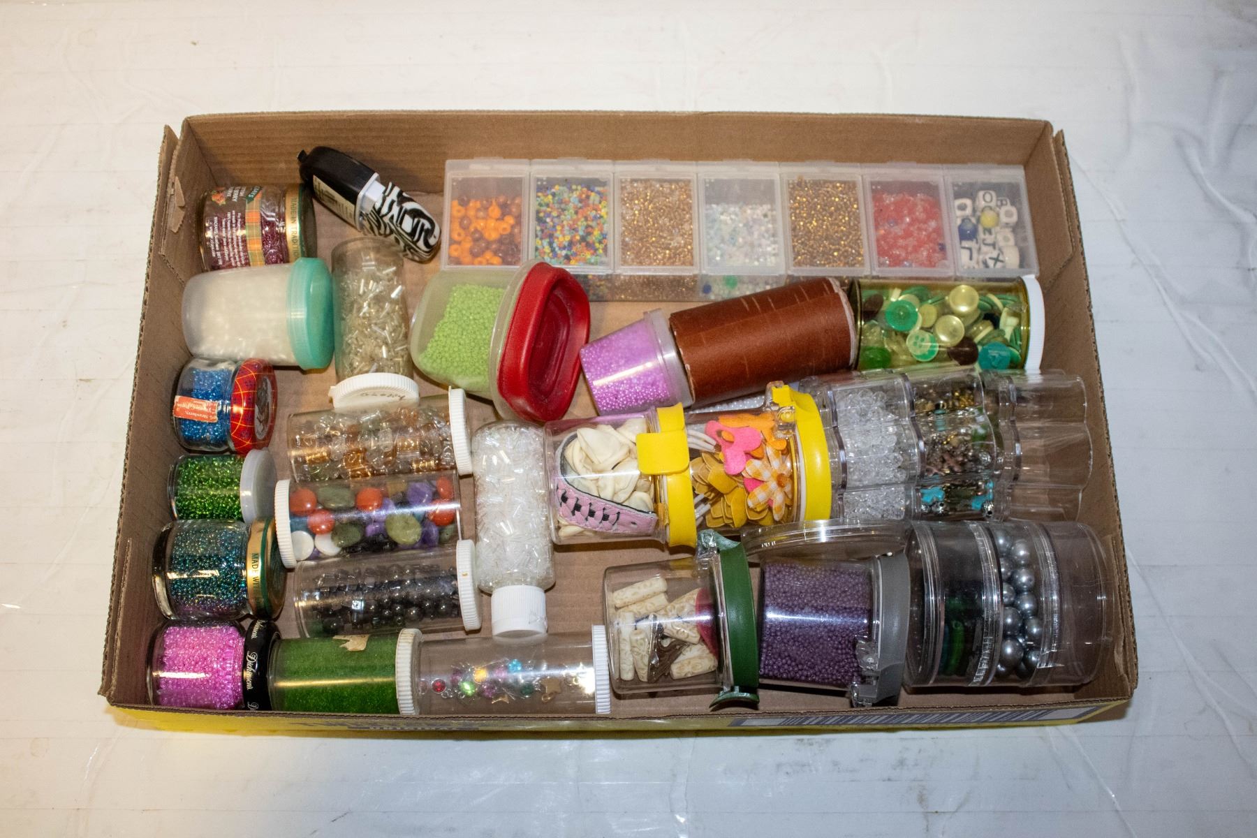FLAT OF BEADS AND CRAFTING MATERIALS