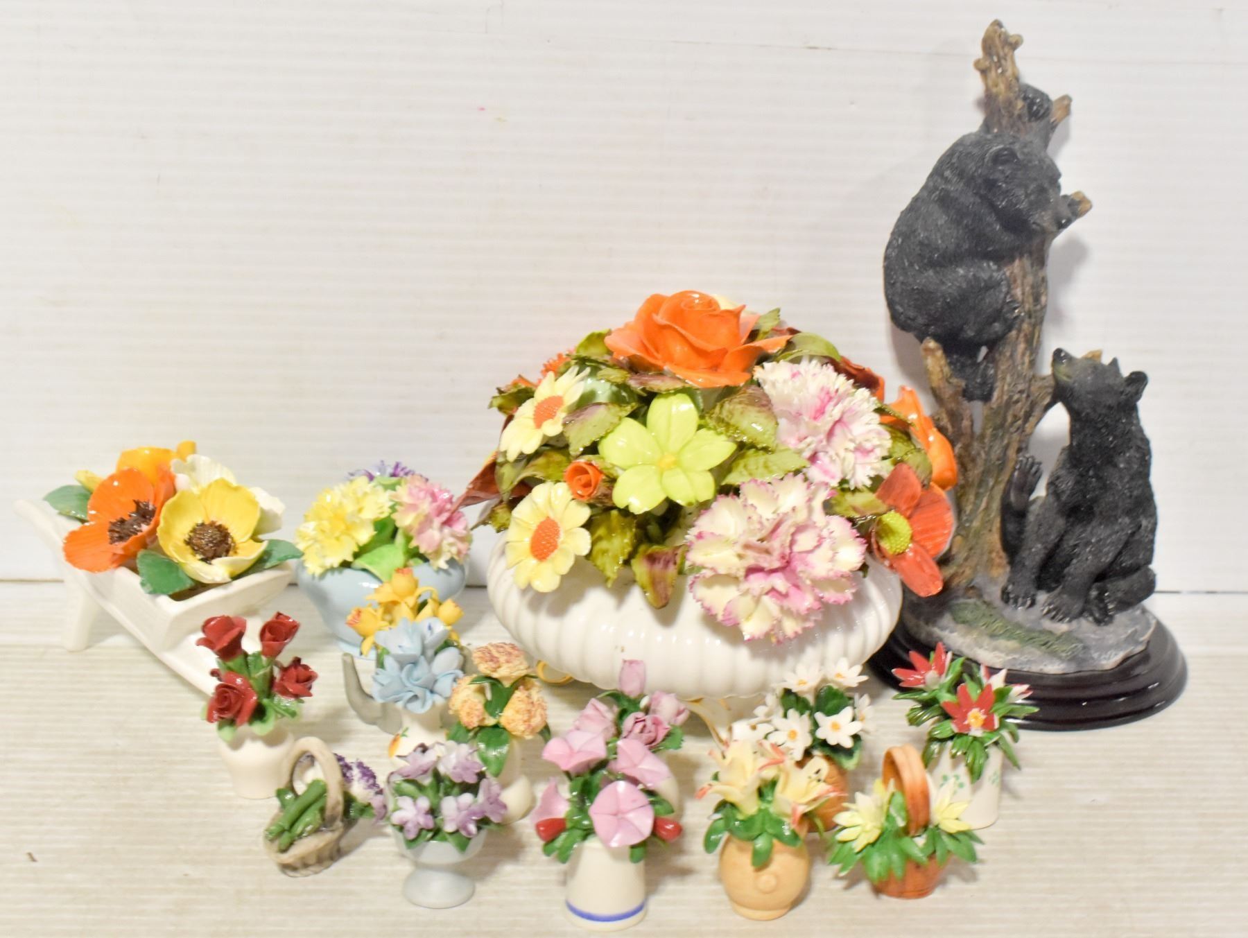 FLAT OF BONE CHINA ORNAMENTS SOLD WITH BEAR DECOR