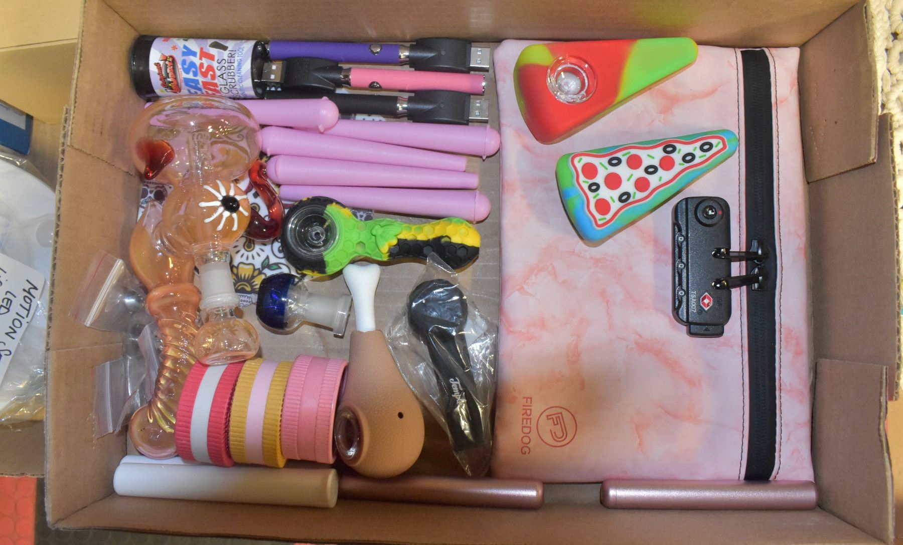 NEW SMELL PROOF ZIPPERED STORAGE BAG, 5 NEW PIPES, NEW 14MM BONG WITH BOWL PIECE AND GLASS NAIL AND DOME FOR OIL USE, 3 NEW GRINDERS, 3 NEW VAPE PENS WITH BATTERIES, EASY FAST GLASS SCRUBBER, 9 NEW DUBE TUBES + NEW VAPE ACCESSORIES **ALL ITEMS MUST BE REMOVED BY 5PM MONDAY, NOVEMBER 7TH, 2022. ALL REMAINING ITEMS WILL BE SUBJECT TO A $6.00 PER DAY STORAGE CHARGE. ANY ITEMS REMAINING AFTER MONDAY, NOVEMBER 28, 2022 WILL BE CONSIDERED FORFEITED. NO REFUNDS WILL BE ISSUED FOR FORFEITED ITEMS. TO SCHEDULE A PICK UP APPOINTMENT CLICK HERE