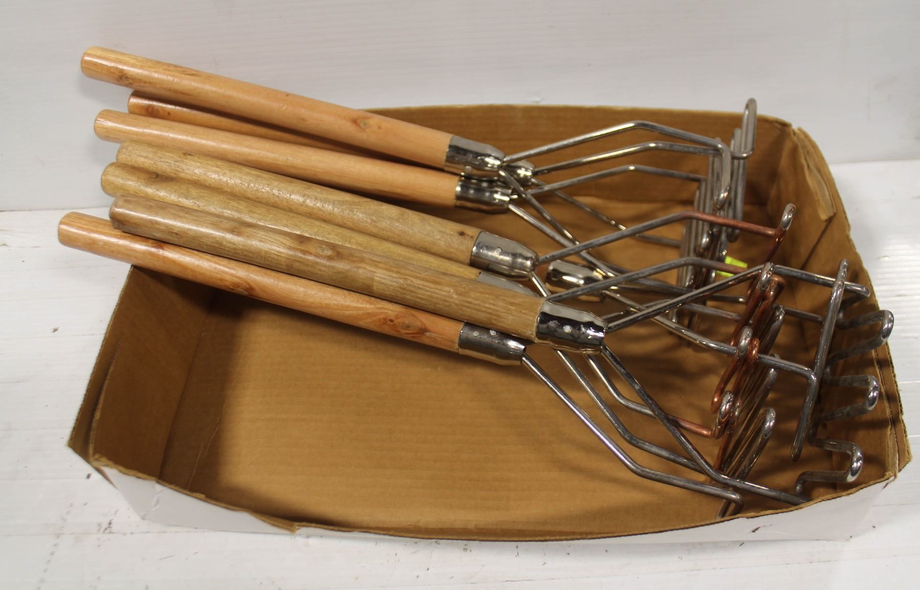FLAT OF BRAND NEW COMMERICAL WOOD HANDLED MASHERS