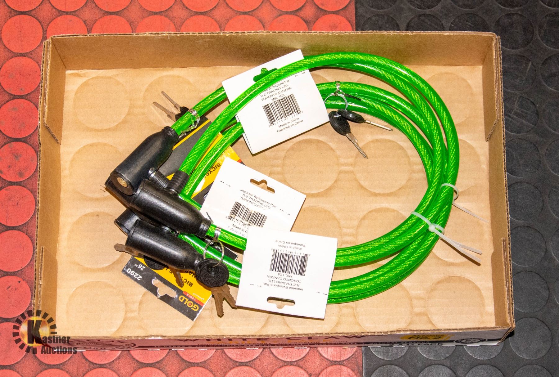 FLAT OF CABLE BICYCLE LOCKS W/ KEYS 5 SETS