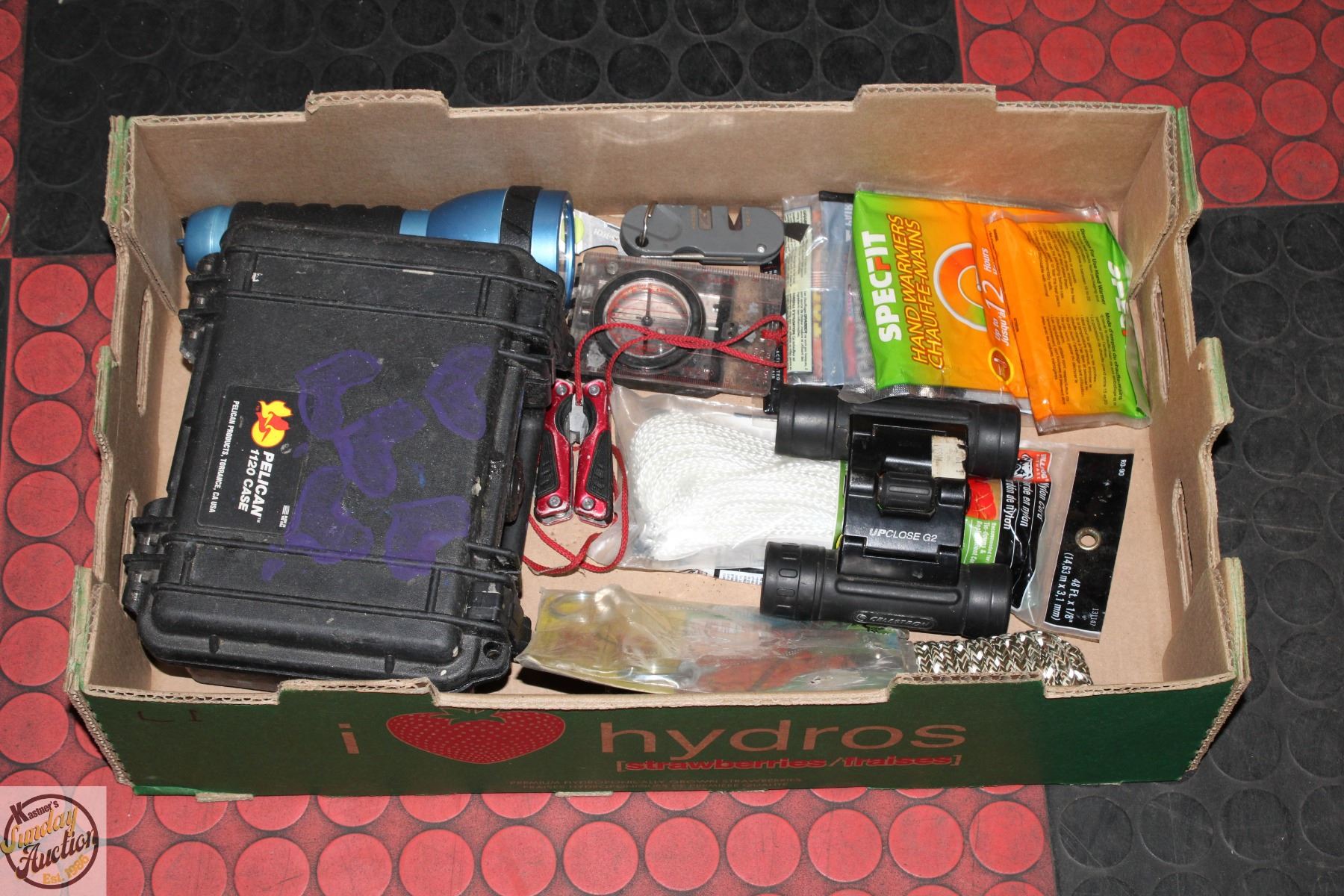GEAR AND ACCESSORIES INCL. CELLESTION BINOCULARS, PELICAN 1120 WATERPROOF HARD CASE, NEW CABLE SAW, NEW NYLON CORD, COMPASS, FLASHLIGHT, MULTI-TOOL, WARMING PACKS, ETC. **ALL ITEMS MUST BE REMOVED BY 5PM SATURDAY, MAY 31ST 2025. ALL REMAINING ITEMS WILL BE SUBJECT TO A $6.00 PER DAY STORAGE CHARGE. ANY ITEMS REMAINING AFTER MONDAY, JUNE 16TH 2025 WILL BE CONSIDERED FORFEITED. NO REFUNDS WILL BE ISSUED FOR FORFEITED ITEMS. TO SCHEDULE A PICK UP APPOINTMENT CLICK HERE
