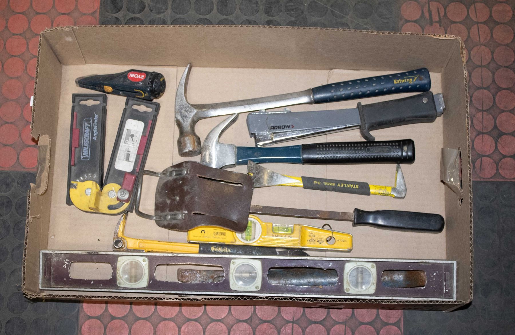 EWING FRAMING HAMMER, ARROW STAPLER, MILESCRAFT ANGLE FINDER, SEVERAL TYPES OF PRYBARS, LEVEL, ETC. **ALL ITEMS MUST BE REMOVED BY 5PM SATURDAY, APRIL 5TH 2025. ALL REMAINING ITEMS WILL BE SUBJECT TO A $6.00 PER DAY STORAGE CHARGE. ANY ITEMS REMAINING AFTER MONDAY, APRIL 21ST 2025 WILL BE CONSIDERED FORFEITED. NO REFUNDS WILL BE ISSUED FOR FORFEITED ITEMS. TO SCHEDULE A PICK UP APPOINTMENT CLICK HERE