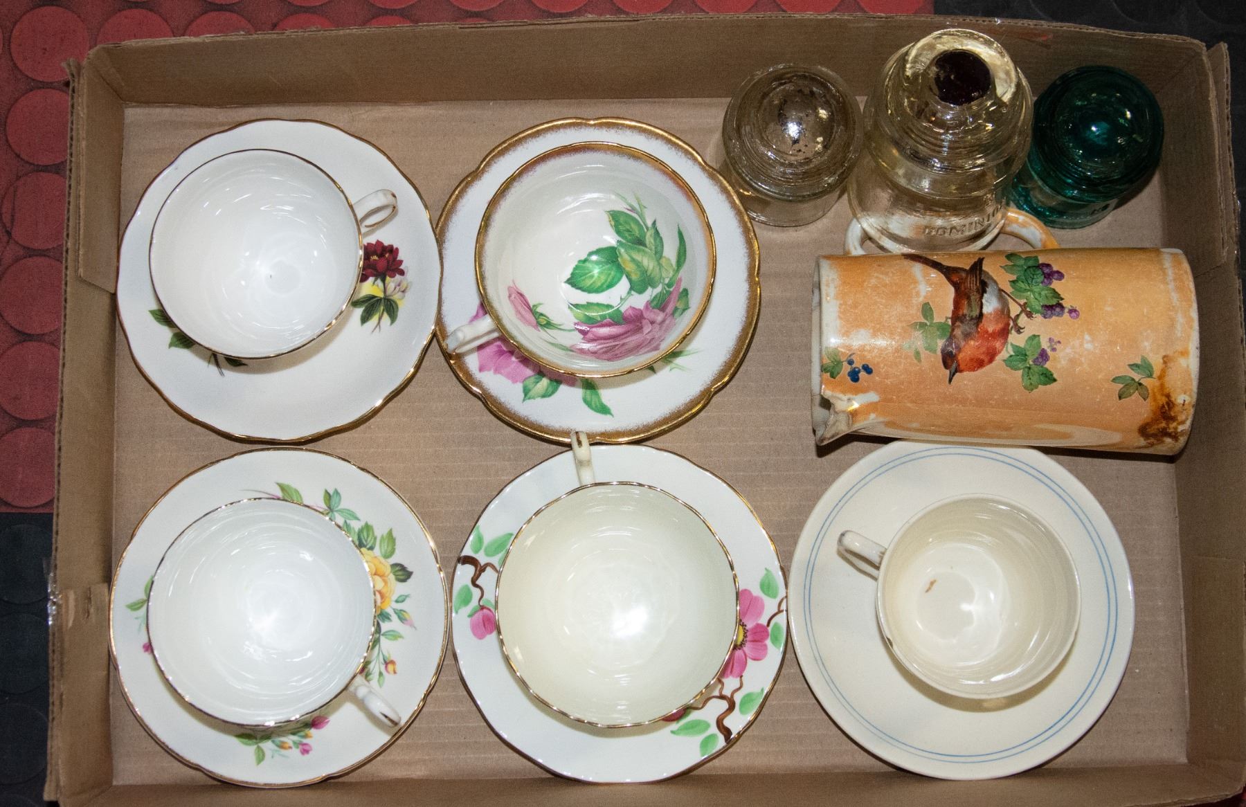 FLAT OF CHINA SOLD WITH GLASS INSULATORS