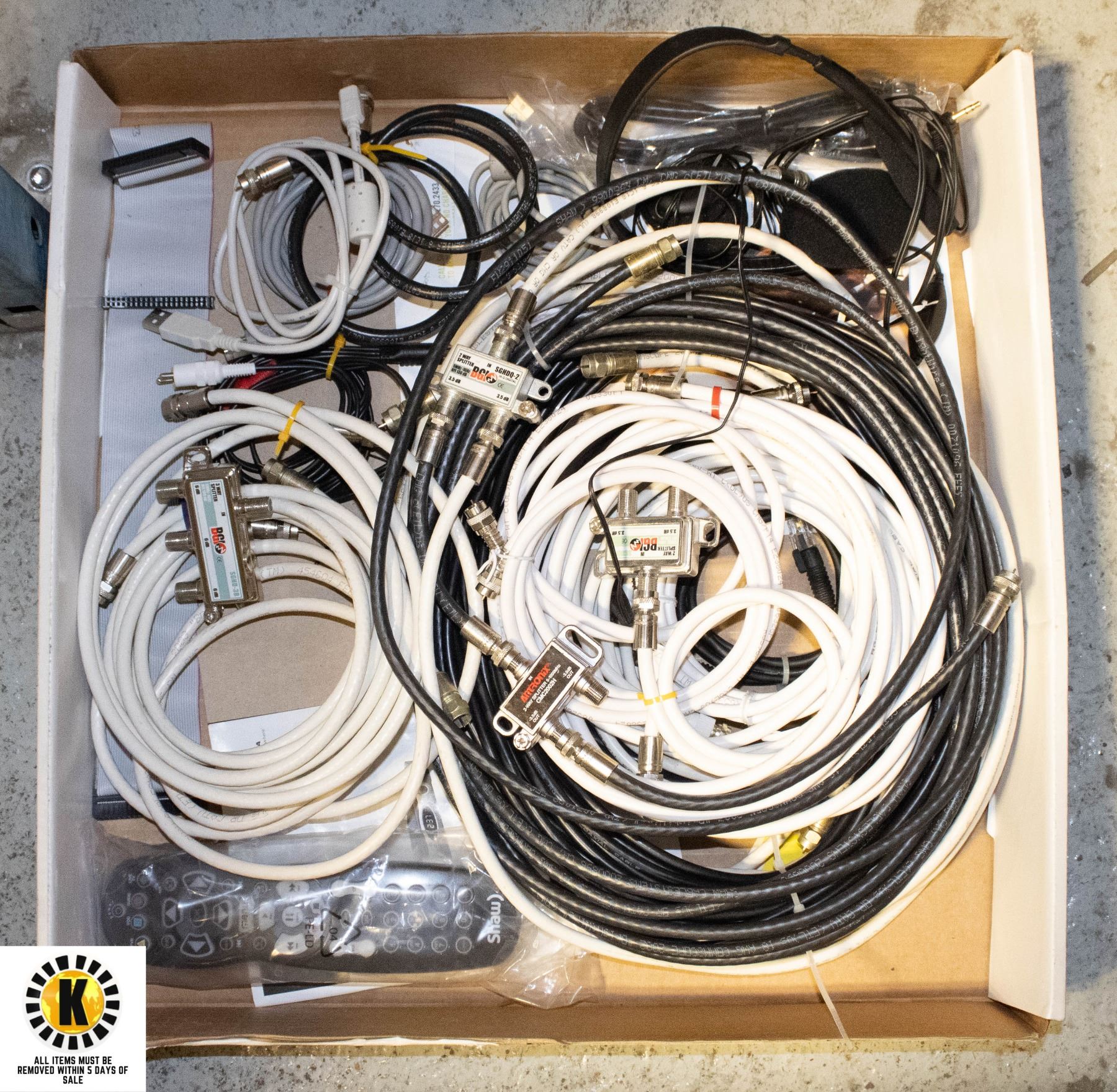 FLAT OF COAX CABLES, SPLITTERS ETC.