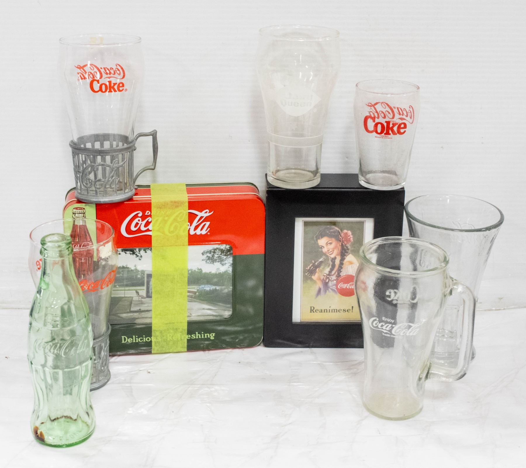 FLAT OF COCA COLA COLLECTIBLES + GLASSWARE