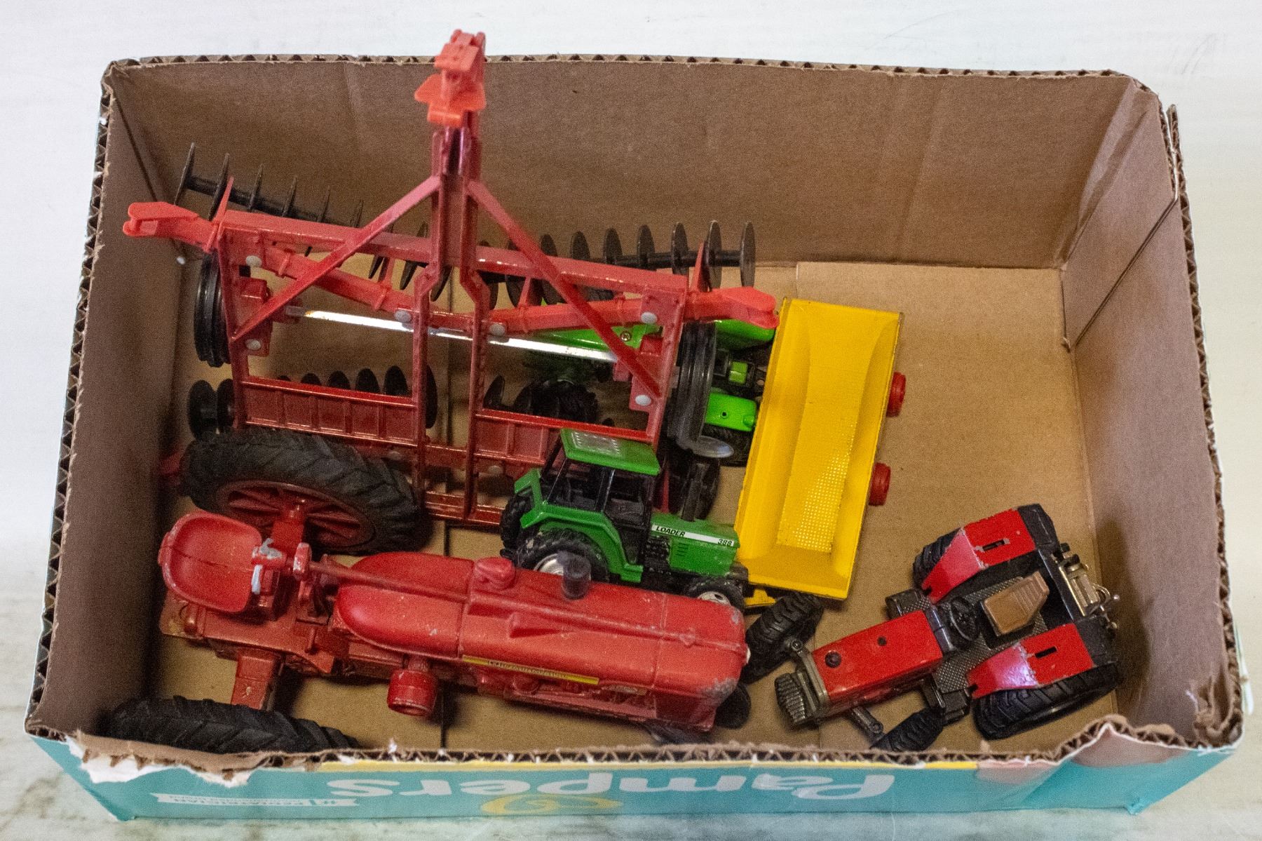 FLAT OF COLECTABLE TRACTOR AND FARMING TRAILERS