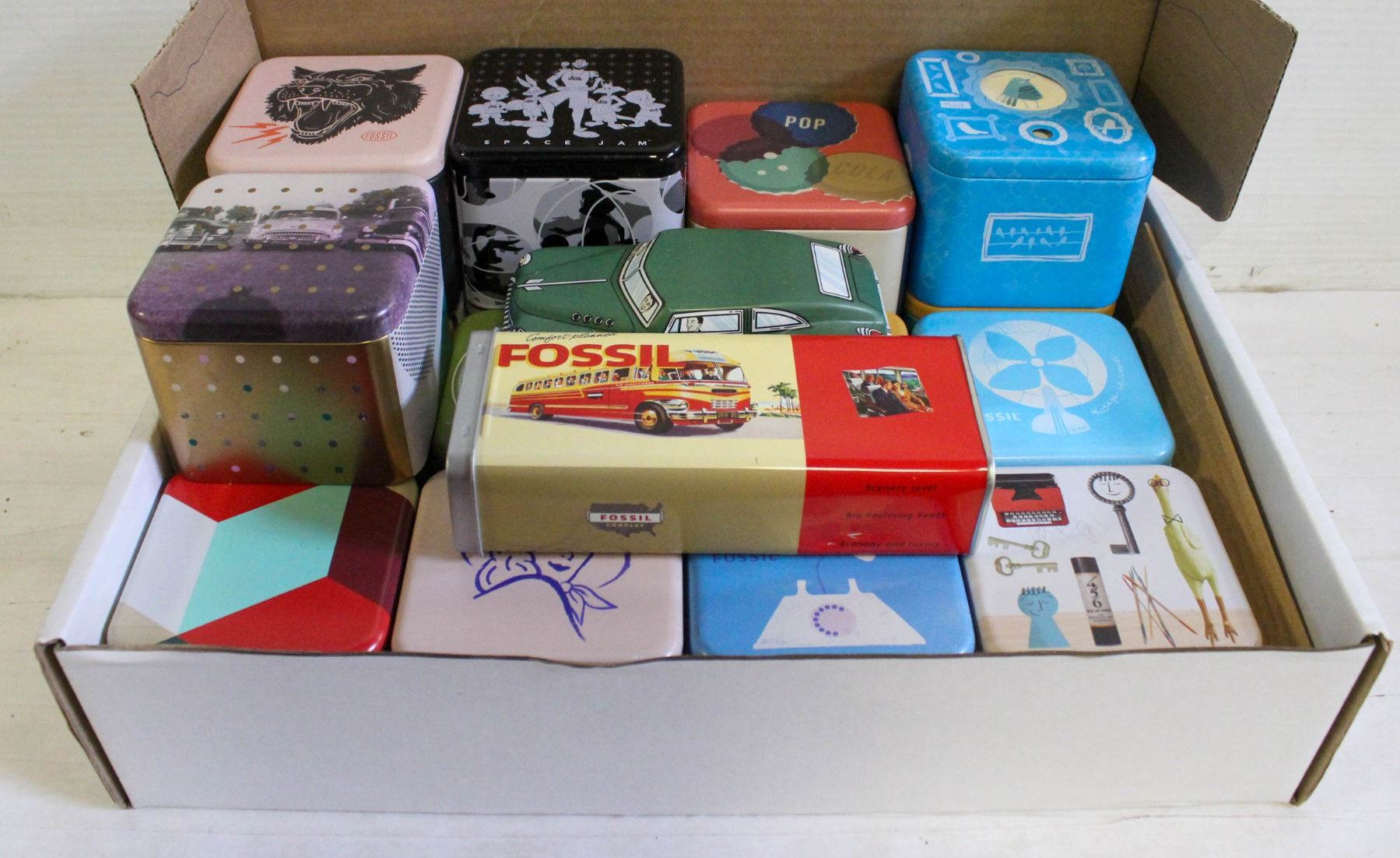 FLAT OF COLLECTABLE FOSSIL WATCH TINS