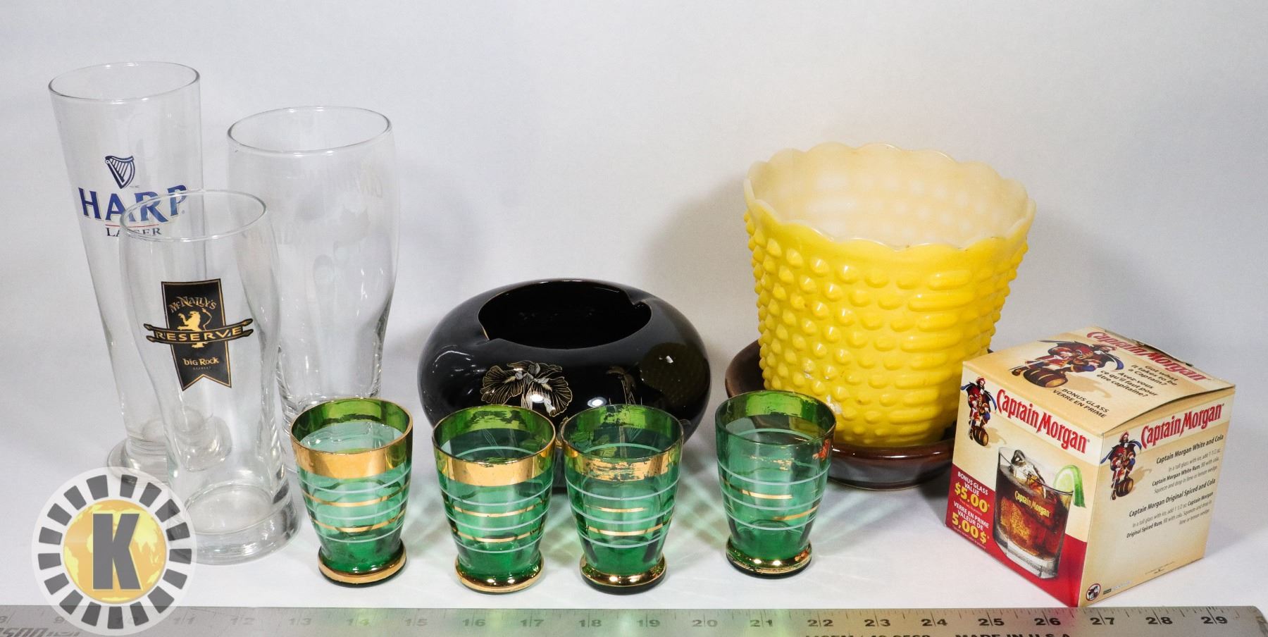 FLAT OF COLLECTIBLE GLASS WARE INCL. SHOT GLASSES