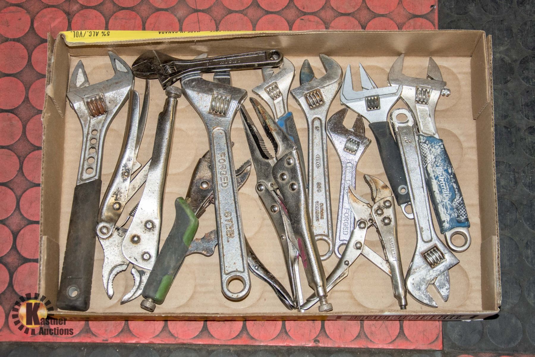 FLAT OF CRESCENT WRENCHES, VISE GRIPS