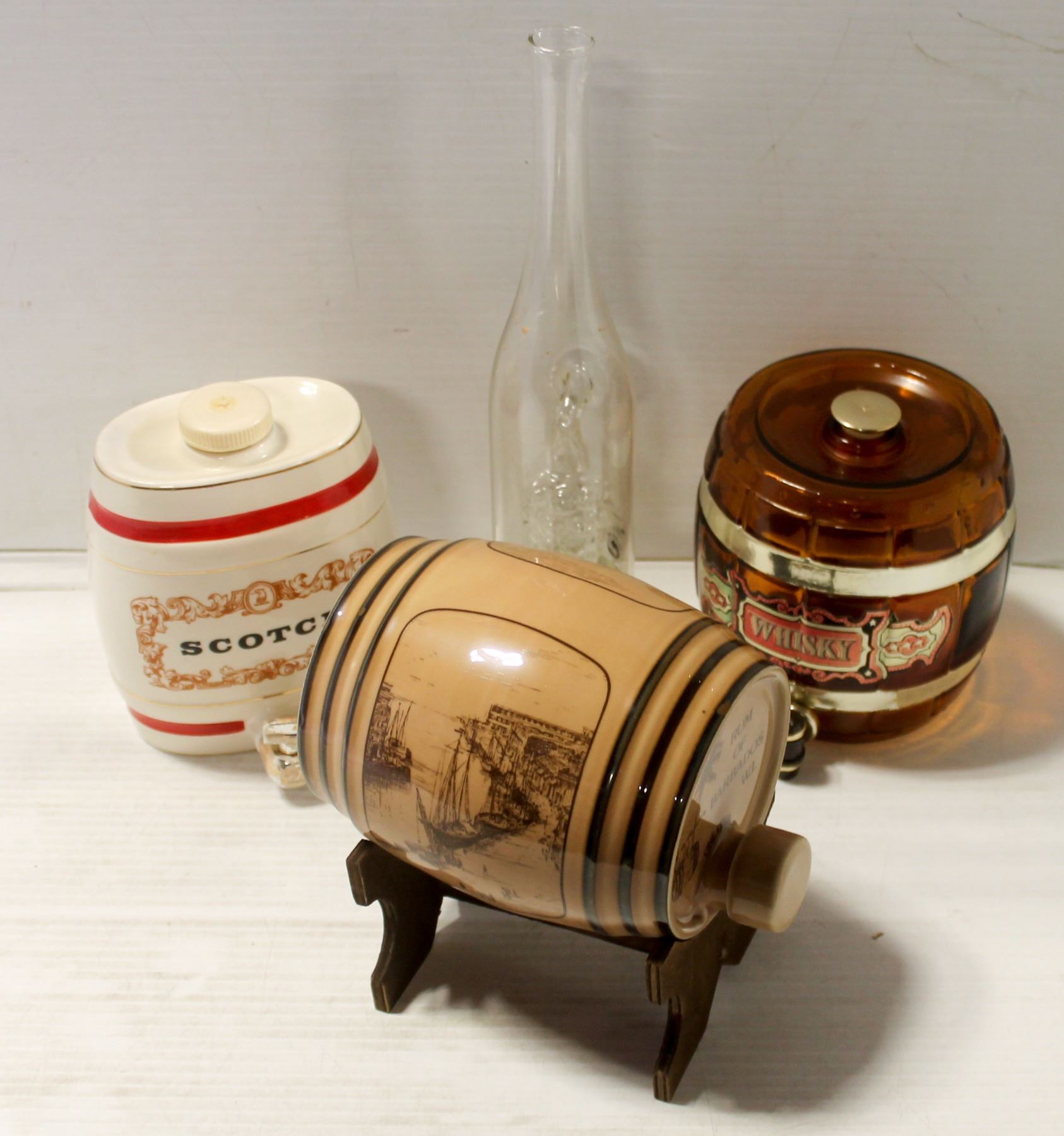 FLAT OF DECANTERS MOSTLY CASK SHAPED.