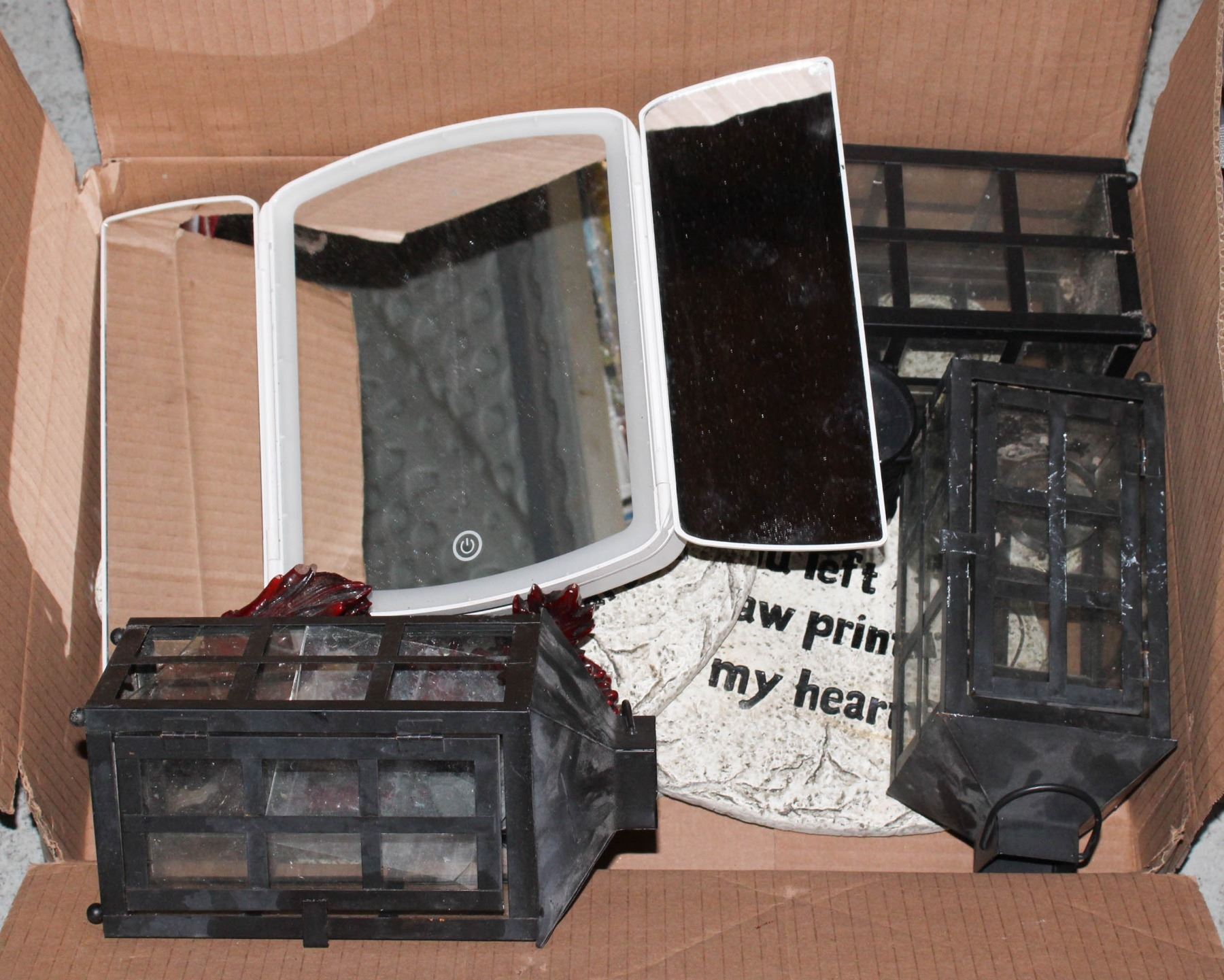 FLAT OF DECORATIVE ITEMS AND CANDLE HOLDERS